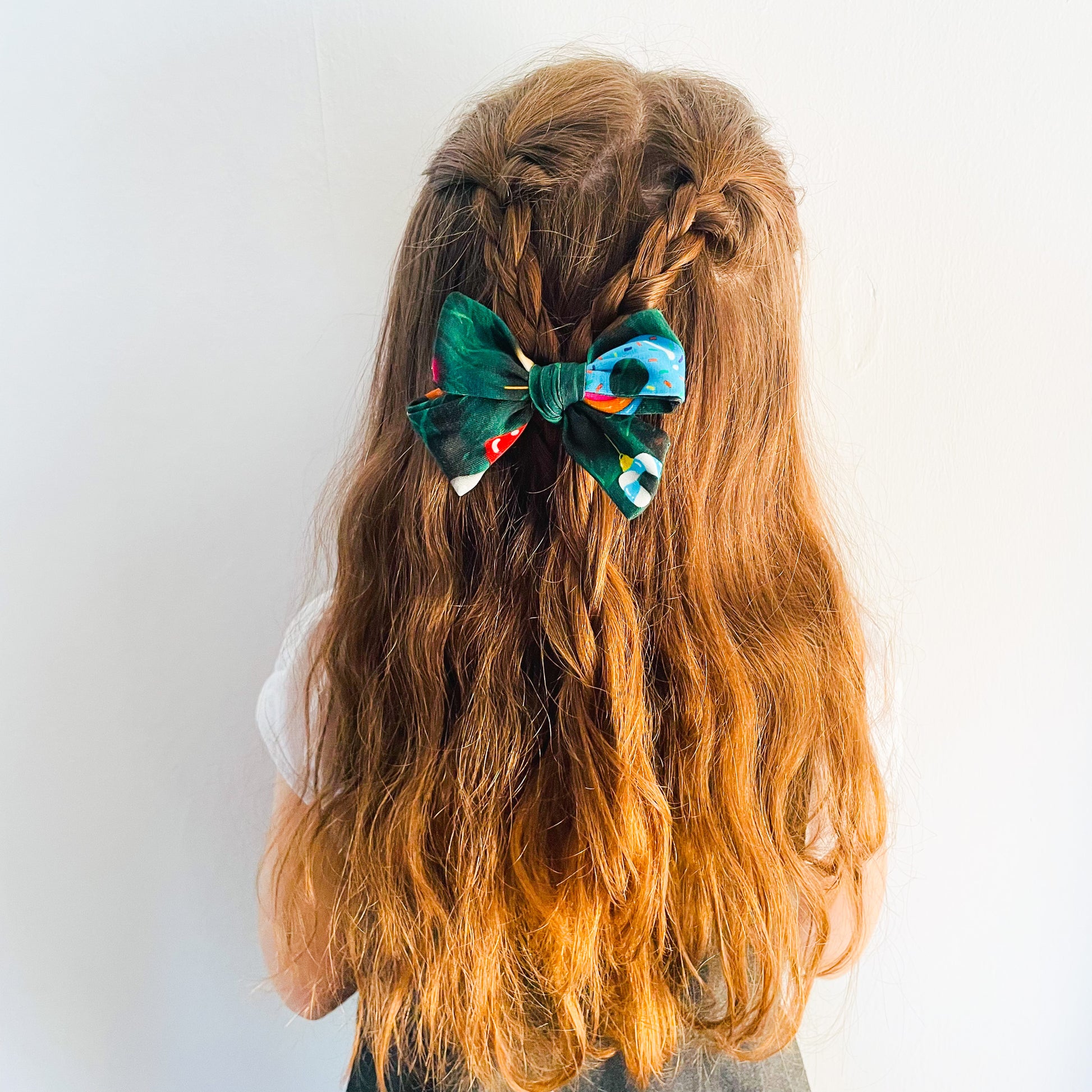 Our bow clips are made from soft and stretchy cotton Lycra, 100% cotton or French terry offcuts!