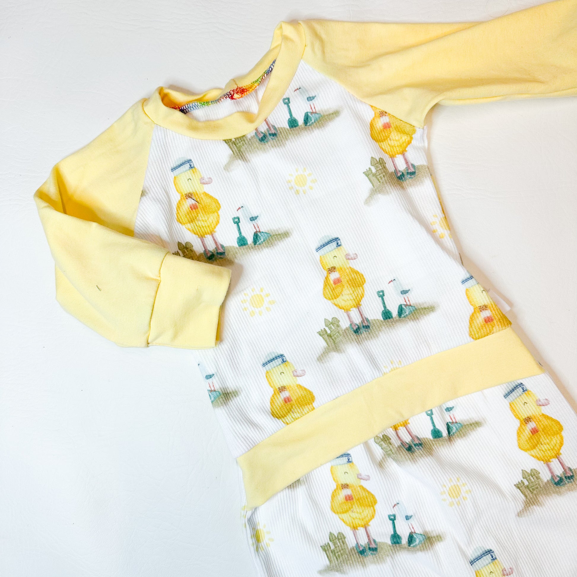 Our banded front opening babygrows are crafted from soft and stretchy Cotton Lycra. They feature rainbow overlocked seams and cuffed ankles and wrists. You can choose a hood or a neckband.