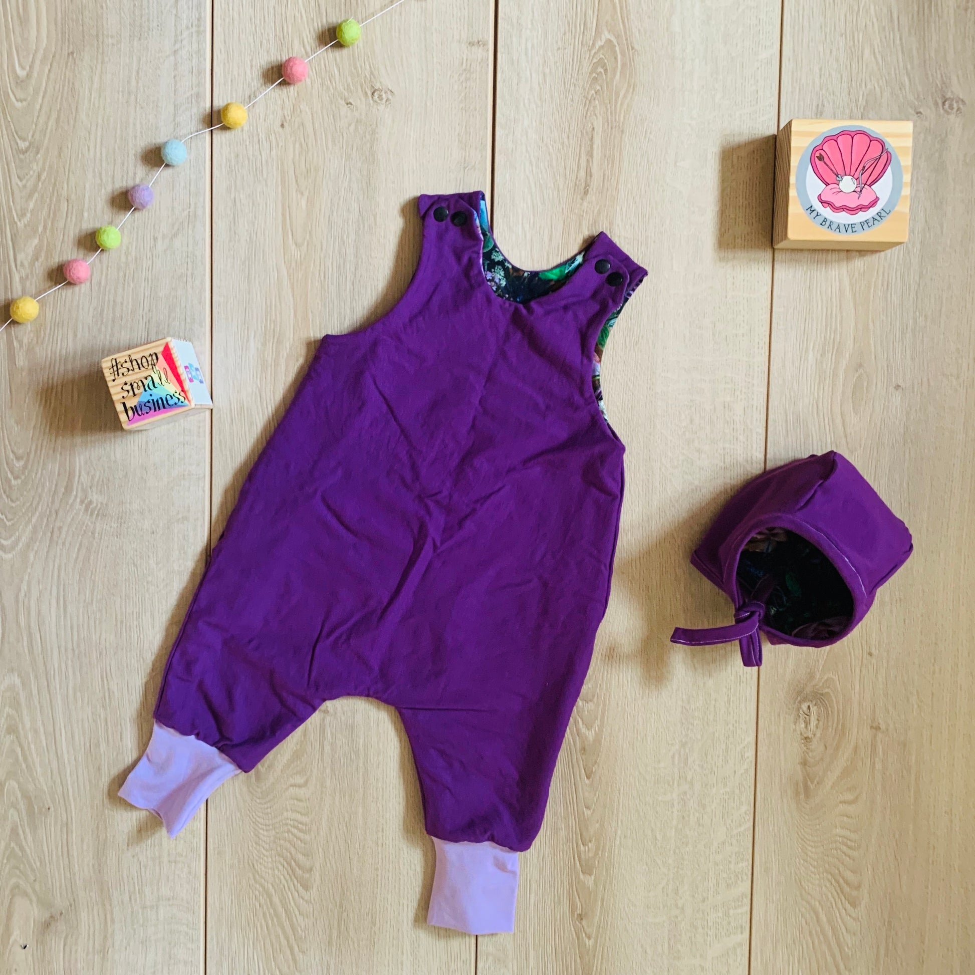 Our reversible rompers are made from soft and stretchy Cotton Lycra or loop back French Terry. They are cloth nappy friendly.