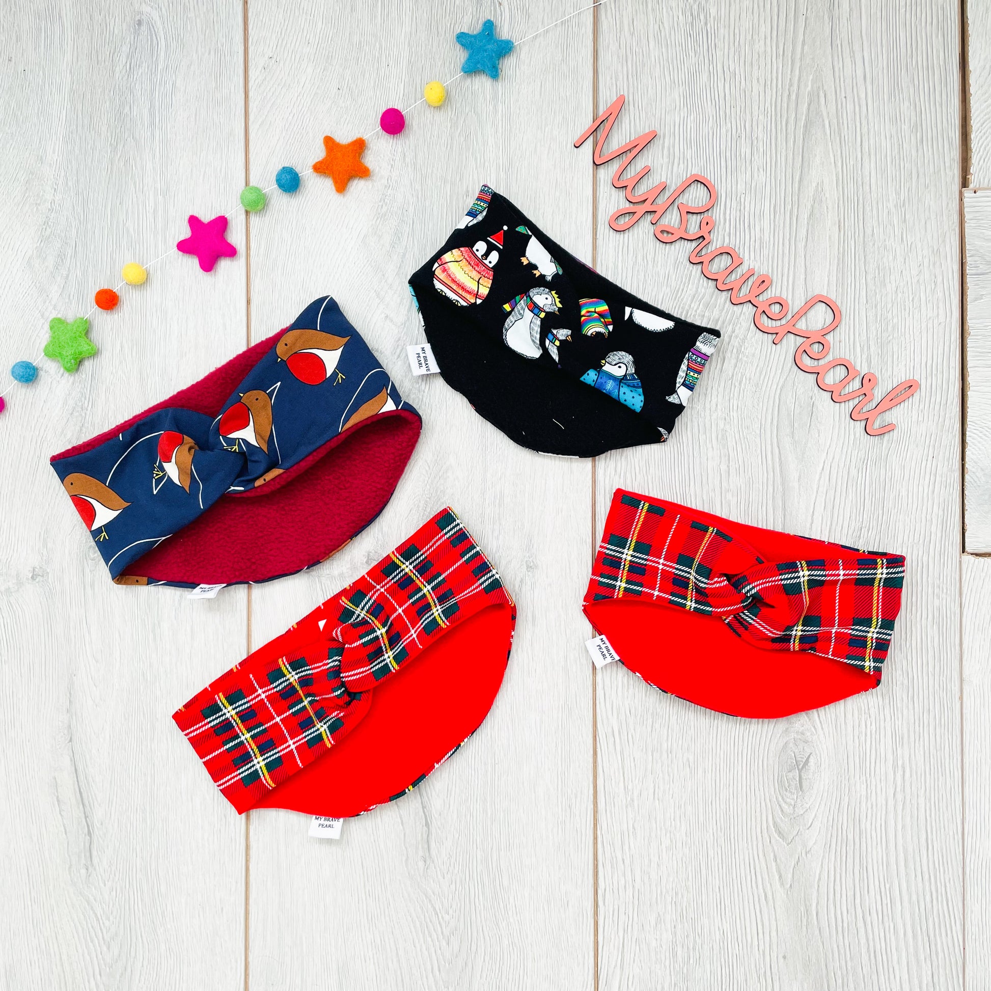 Our earwarmer headbands are made from soft and stretchy cotton Lycra or French Terry with a fleece lining.