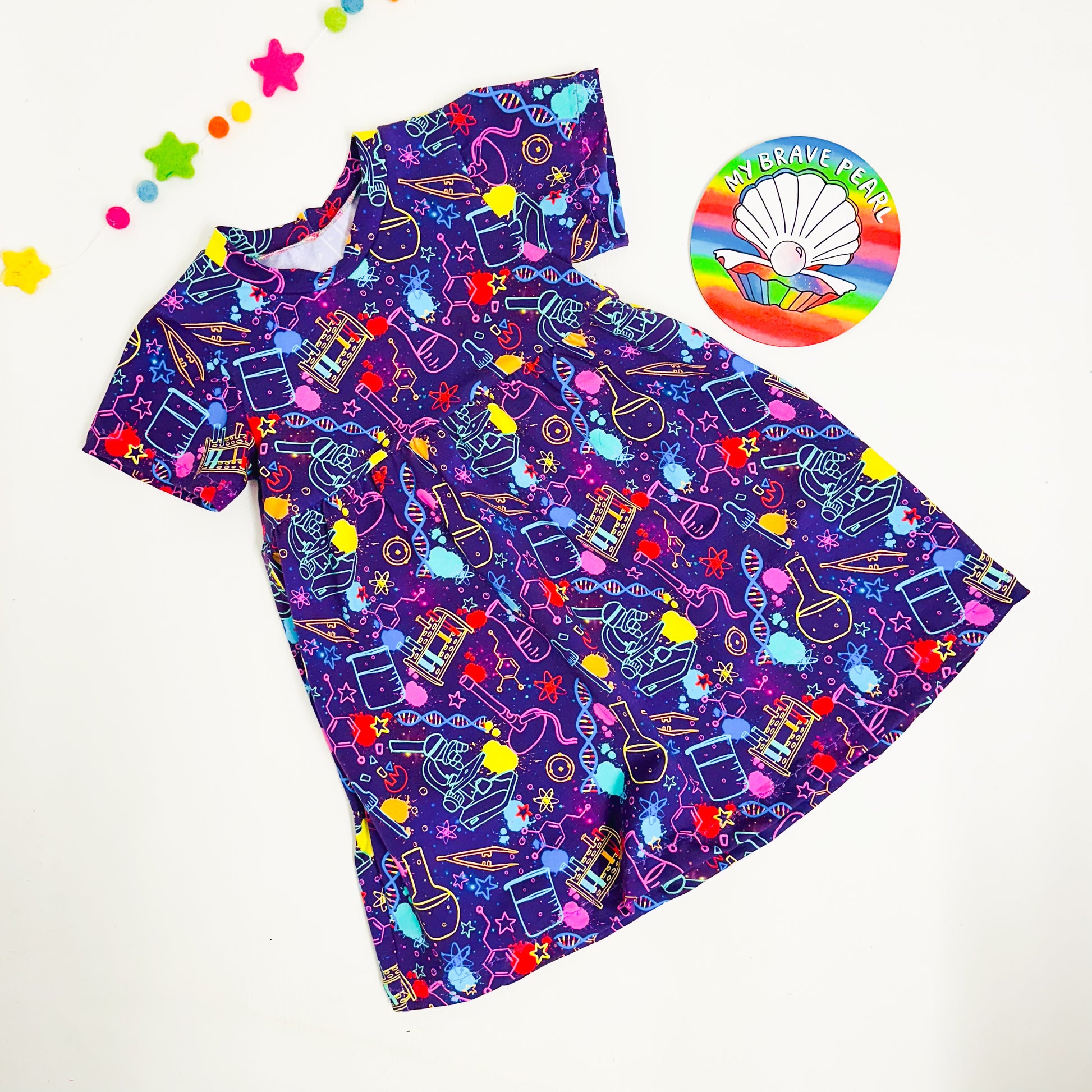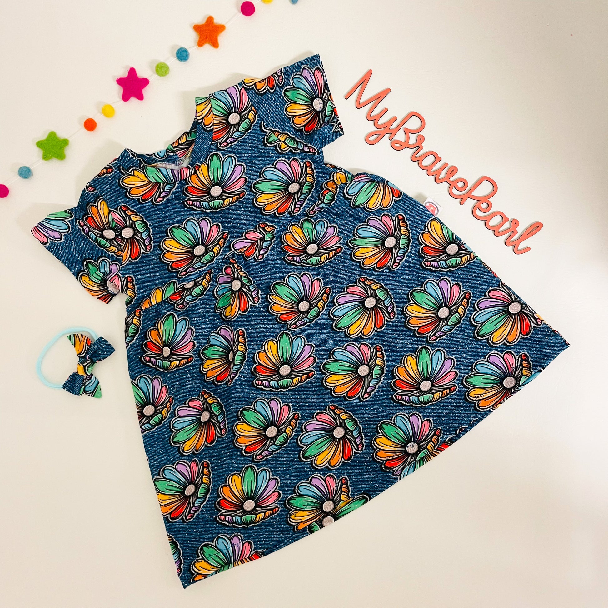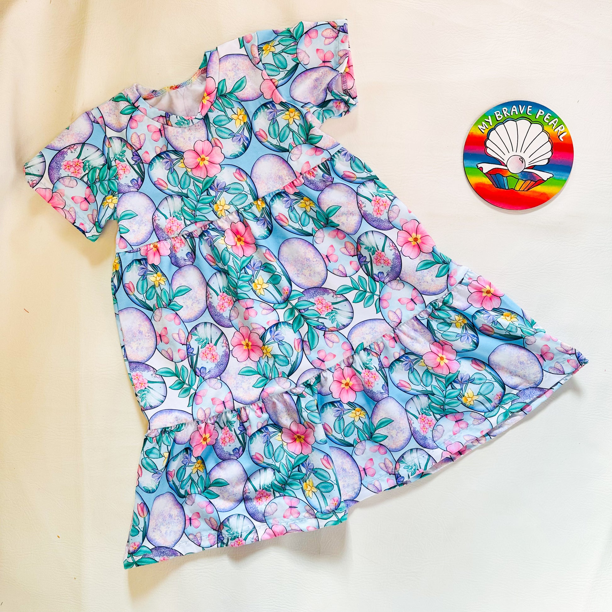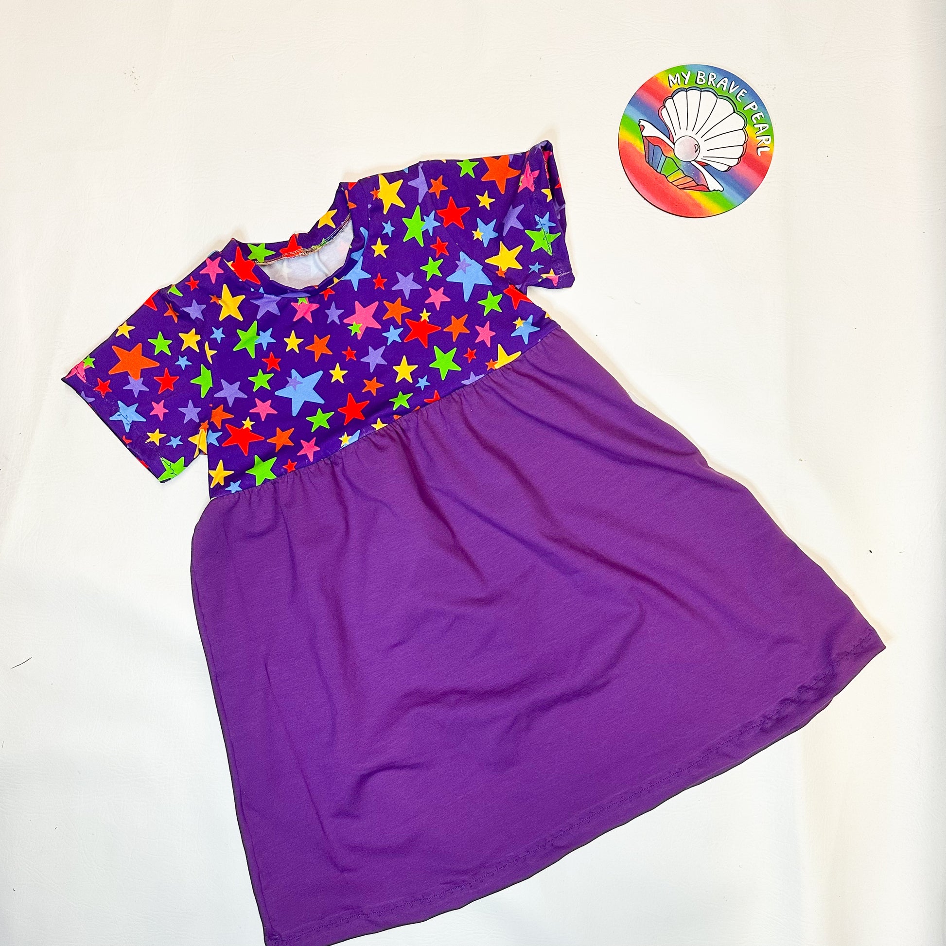 Our Kids Dotty Dresses are crafted from soft and stretchy Cotton Lycra and feature rainbow overlocked internal seams for comfort. They have a relaxed fit bodice gathered at the waist with the choice of a simple or 2 tier skirt.