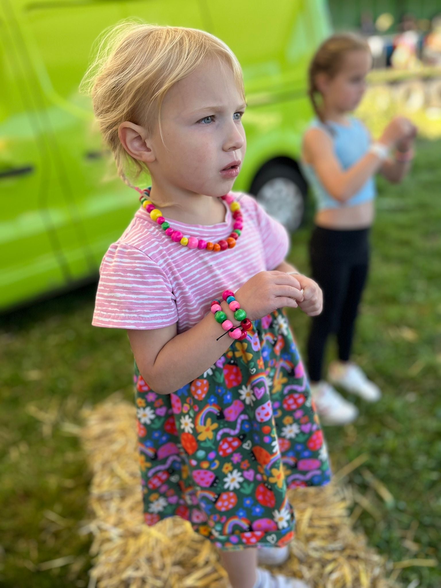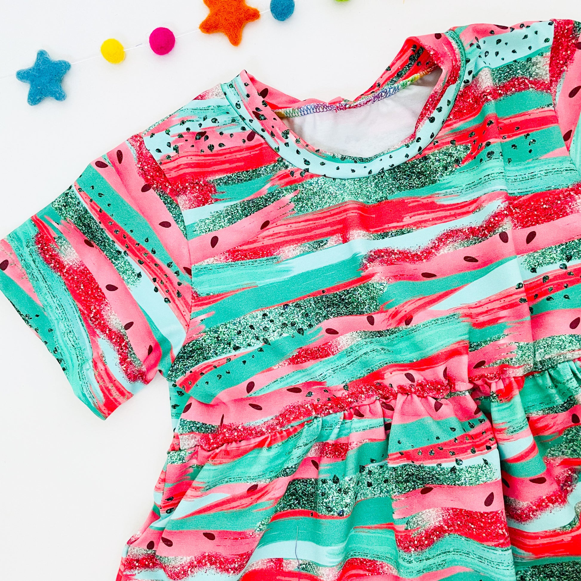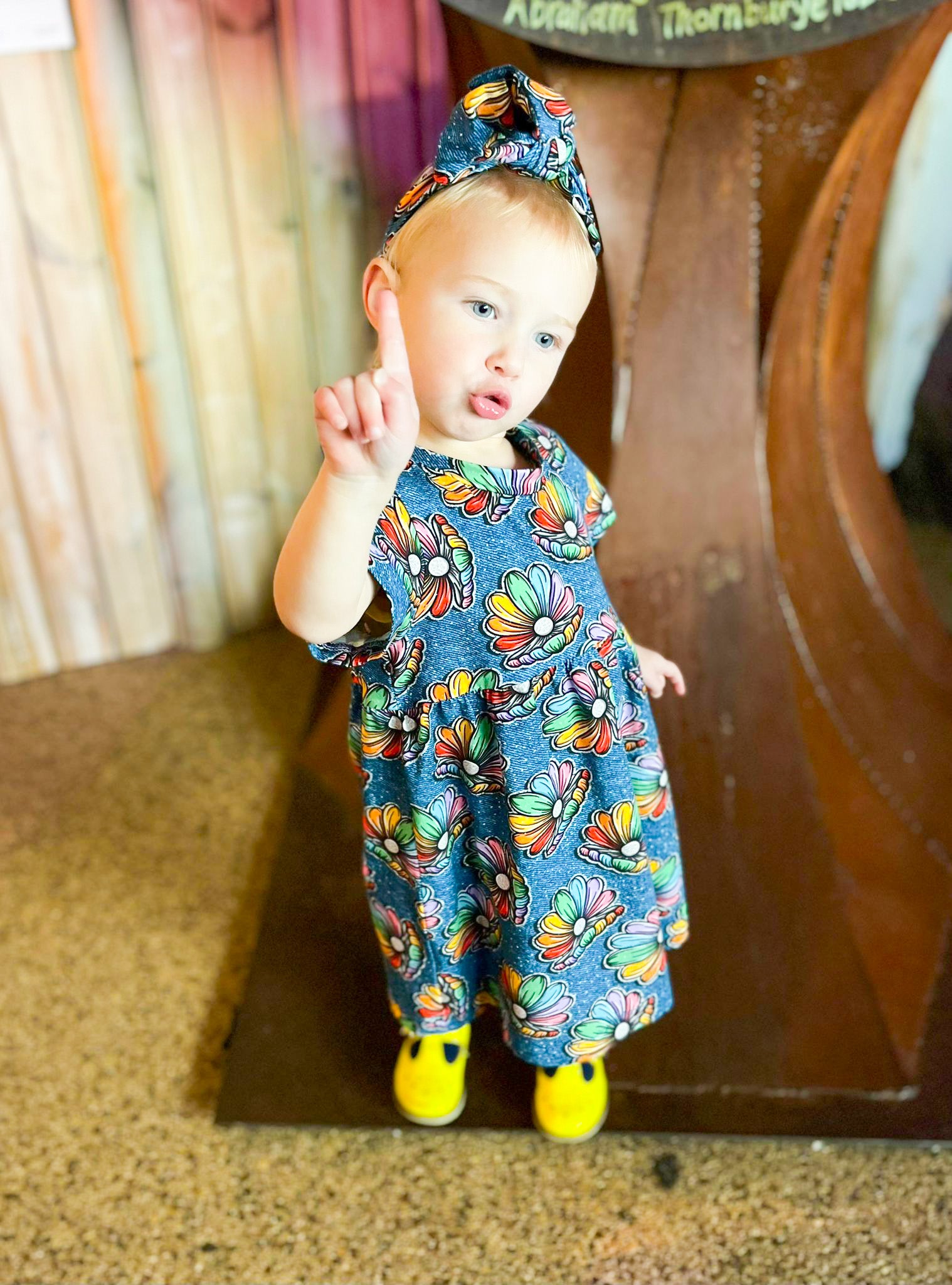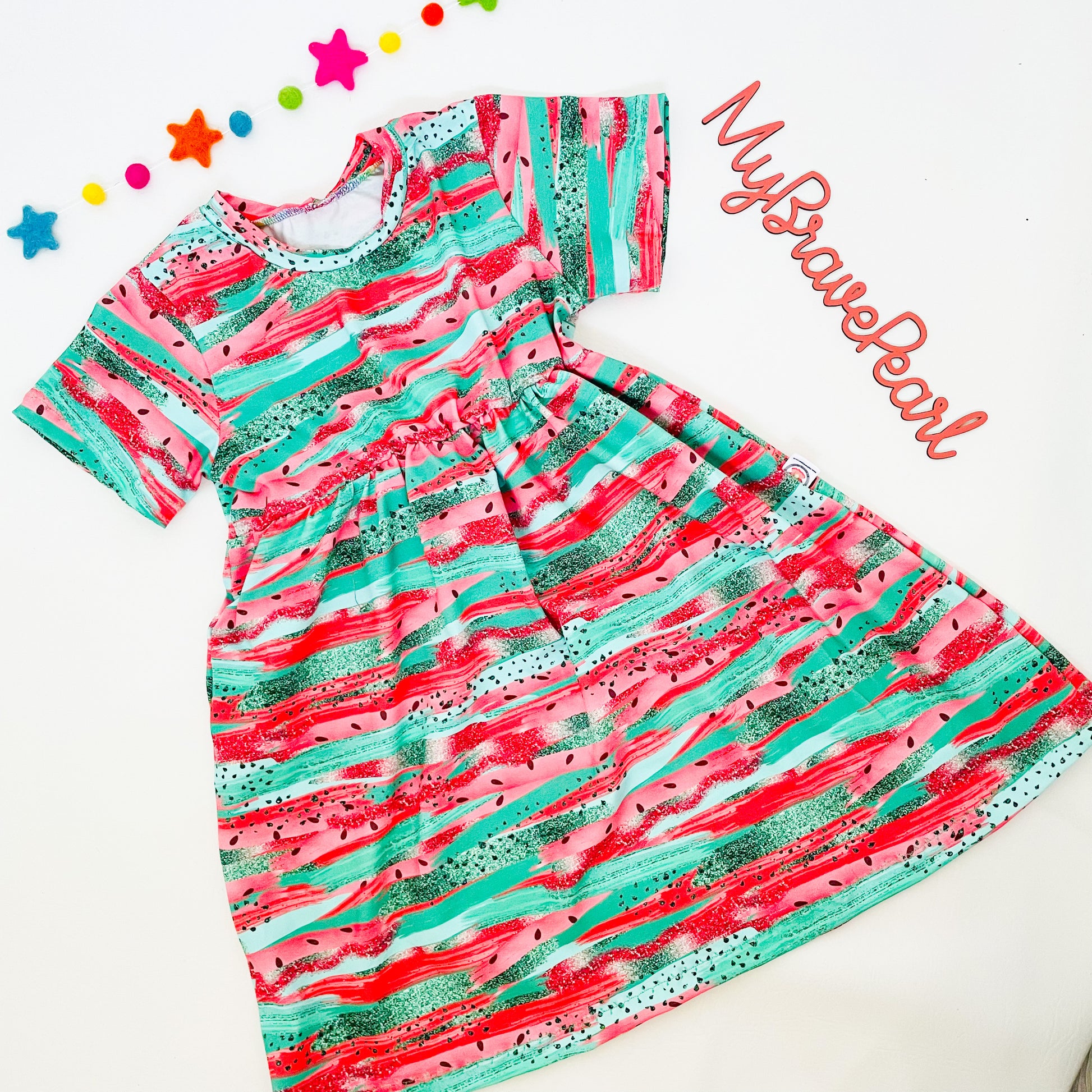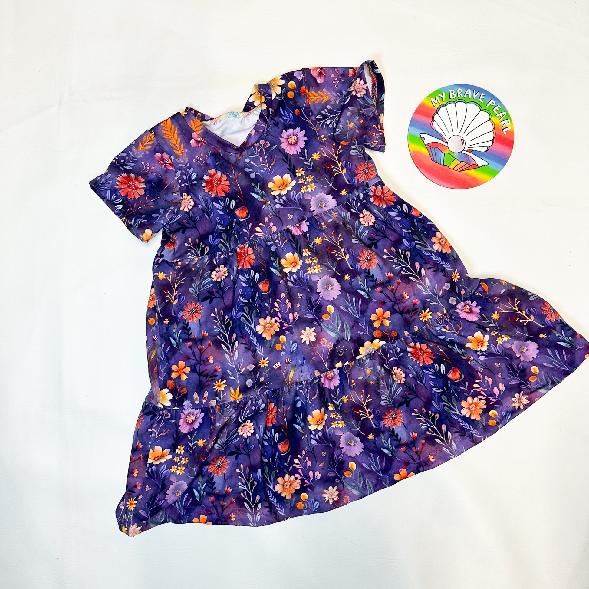 Our Kids Dotty Dresses are crafted from soft and stretchy Cotton Lycra and feature rainbow overlocked internal seams for comfort. They have a relaxed fit bodice gathered at the waist with the choice of a simple or 2 tier skirt.