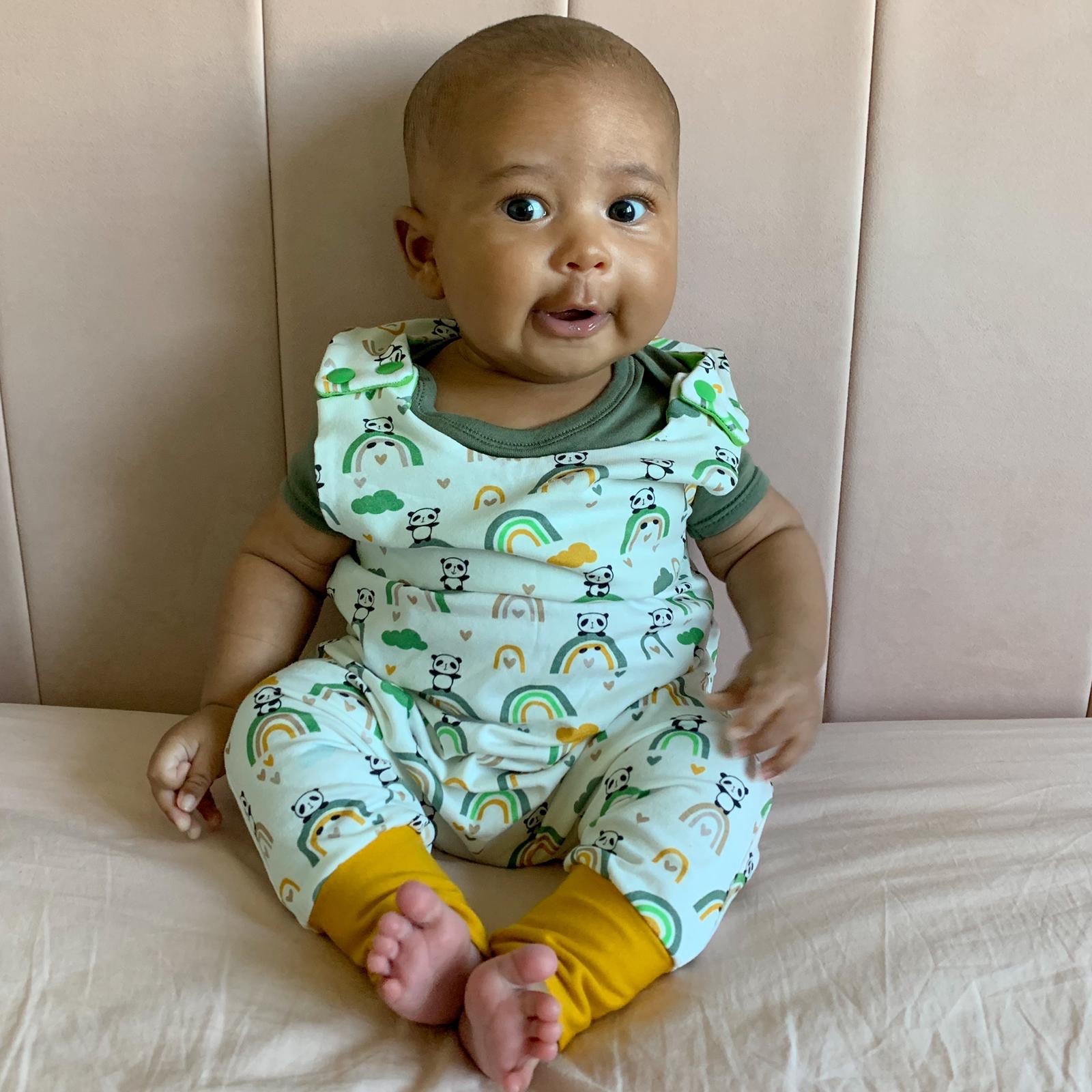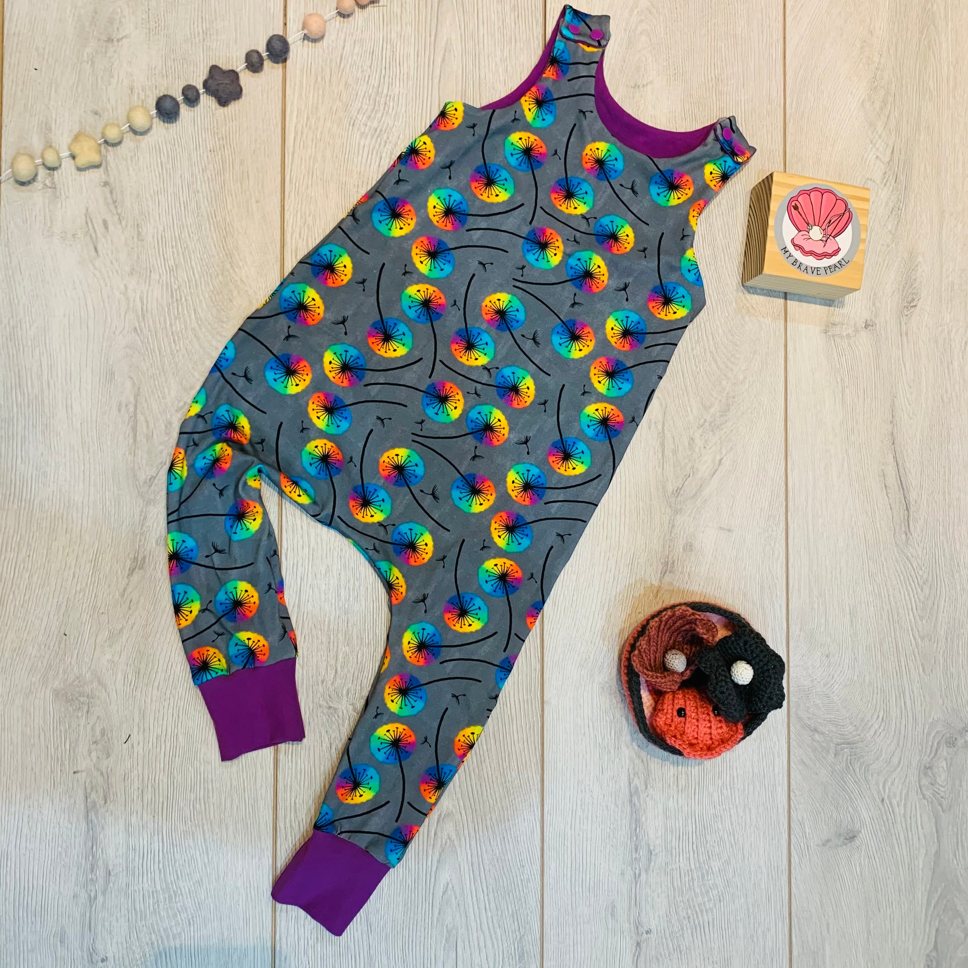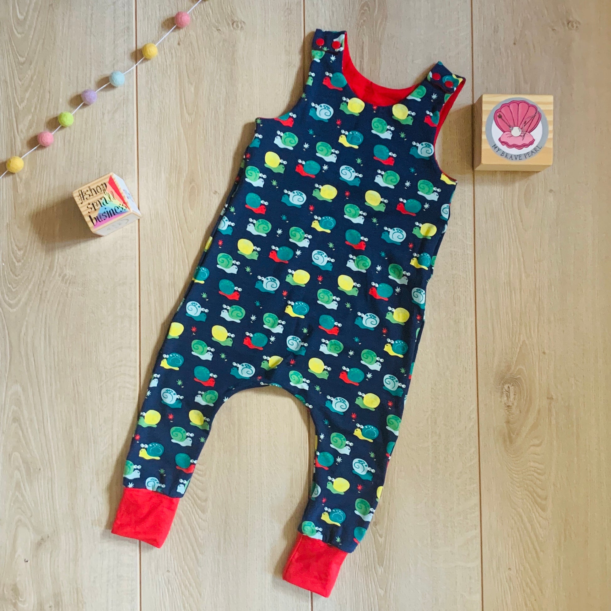 Our harem rompers are made from soft and stretchy Cotton Lycra or loop back French Terry. They are cloth nappy friendly with a slim leg. These suit children with a longer torso.