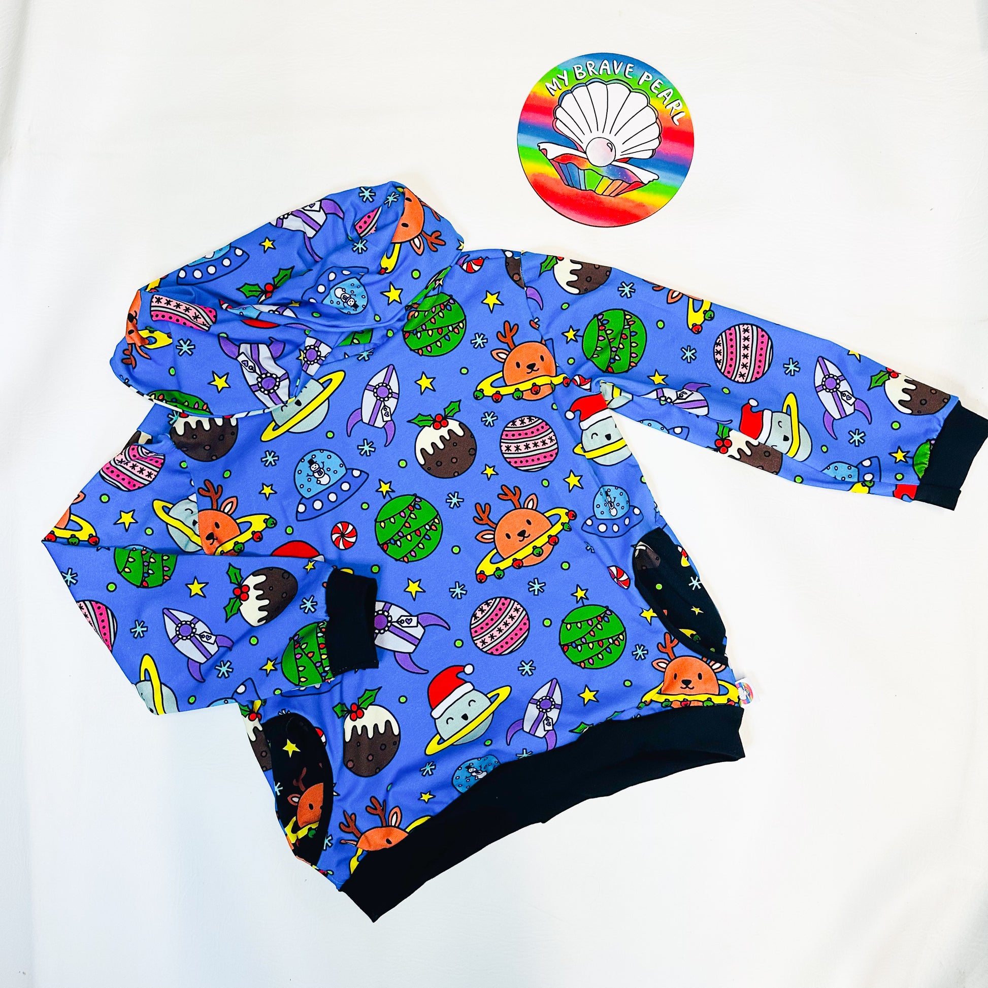Our Kids Cowl Neck Jumpers are crafted from soft and stretchy Cotton Lycra and feature a large overlapped cowl collar, a through pocket and rainbow overlocker seams for comfort.