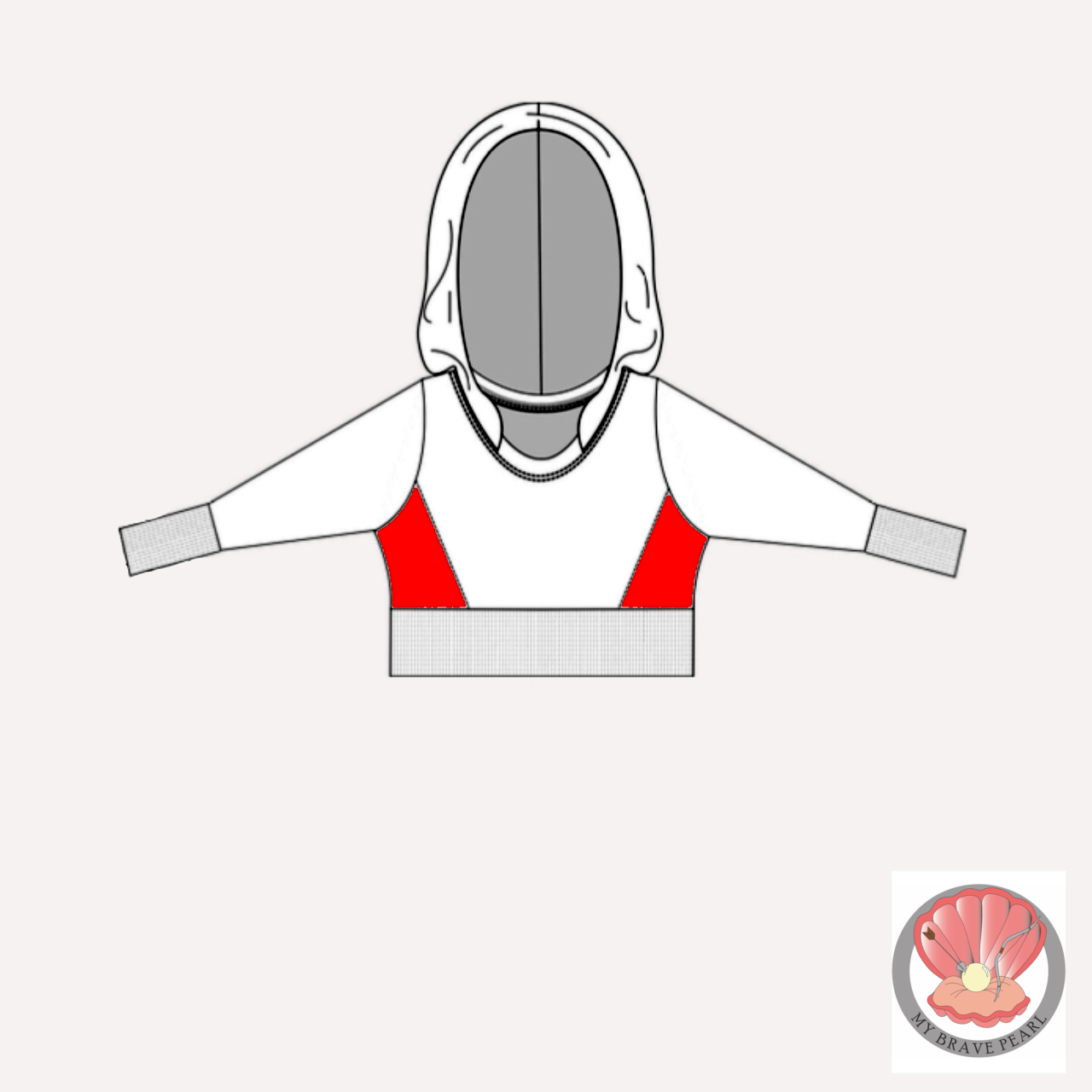 Our Kids Crop Hoodies are crafted from soft and stretchy Cotton Lycra and feature rainbow overlocked internal seams for comfort. They have 2 cuff styles, and can also be colourblocked.