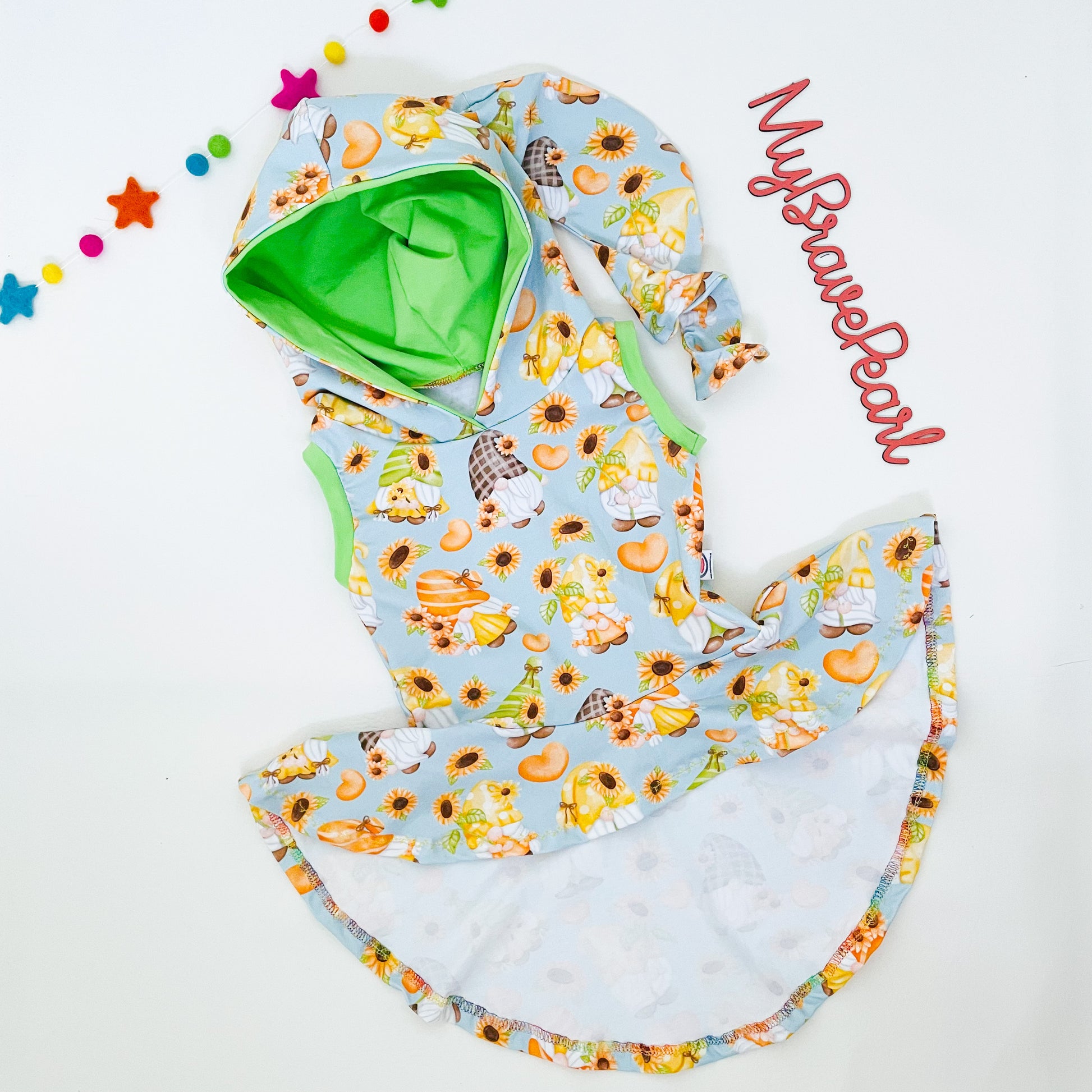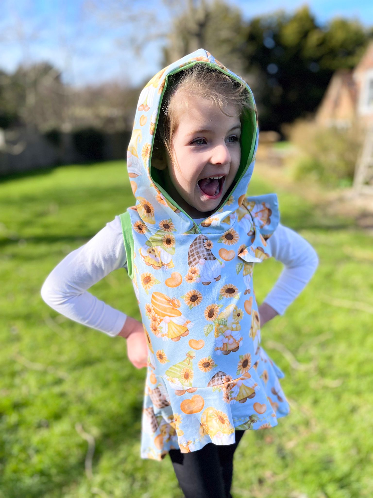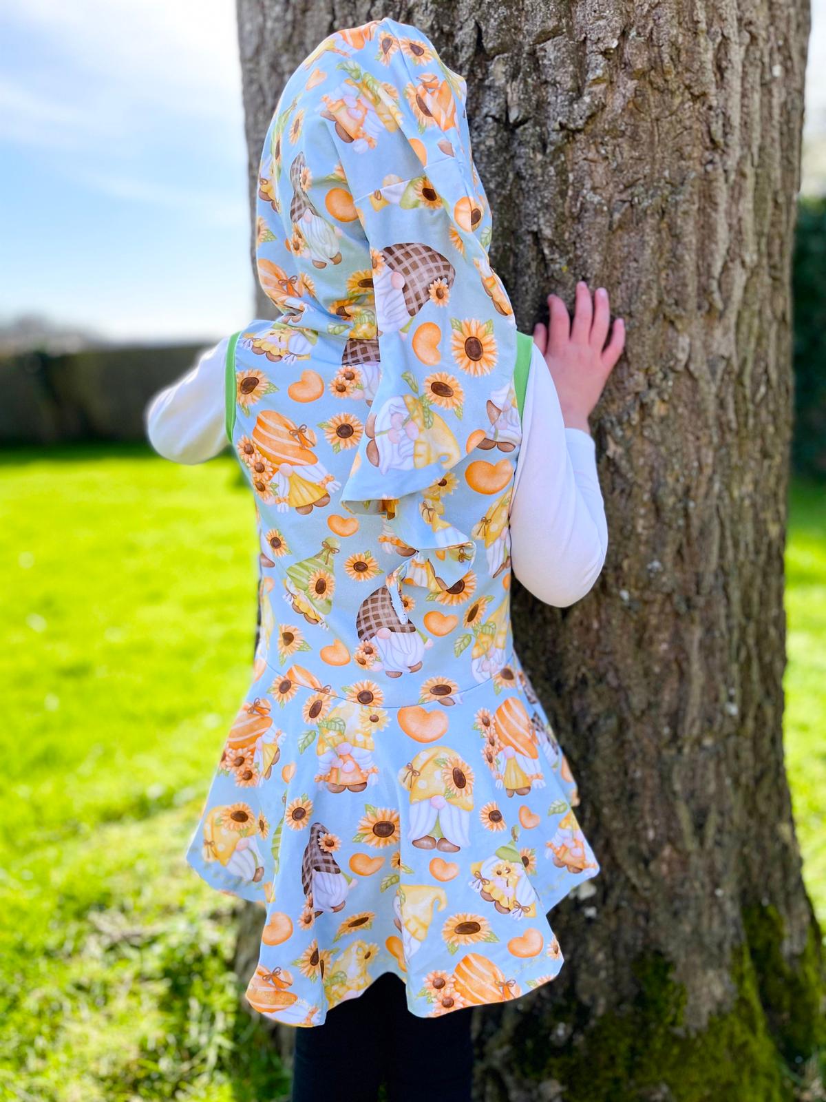 Our Kids Pixie Tops are crafted from soft and stretchy Cotton Lycra and feature rainbow overlocked internal seams for comfort.They have a Hi Lo hem, and a twisty pixie hood.