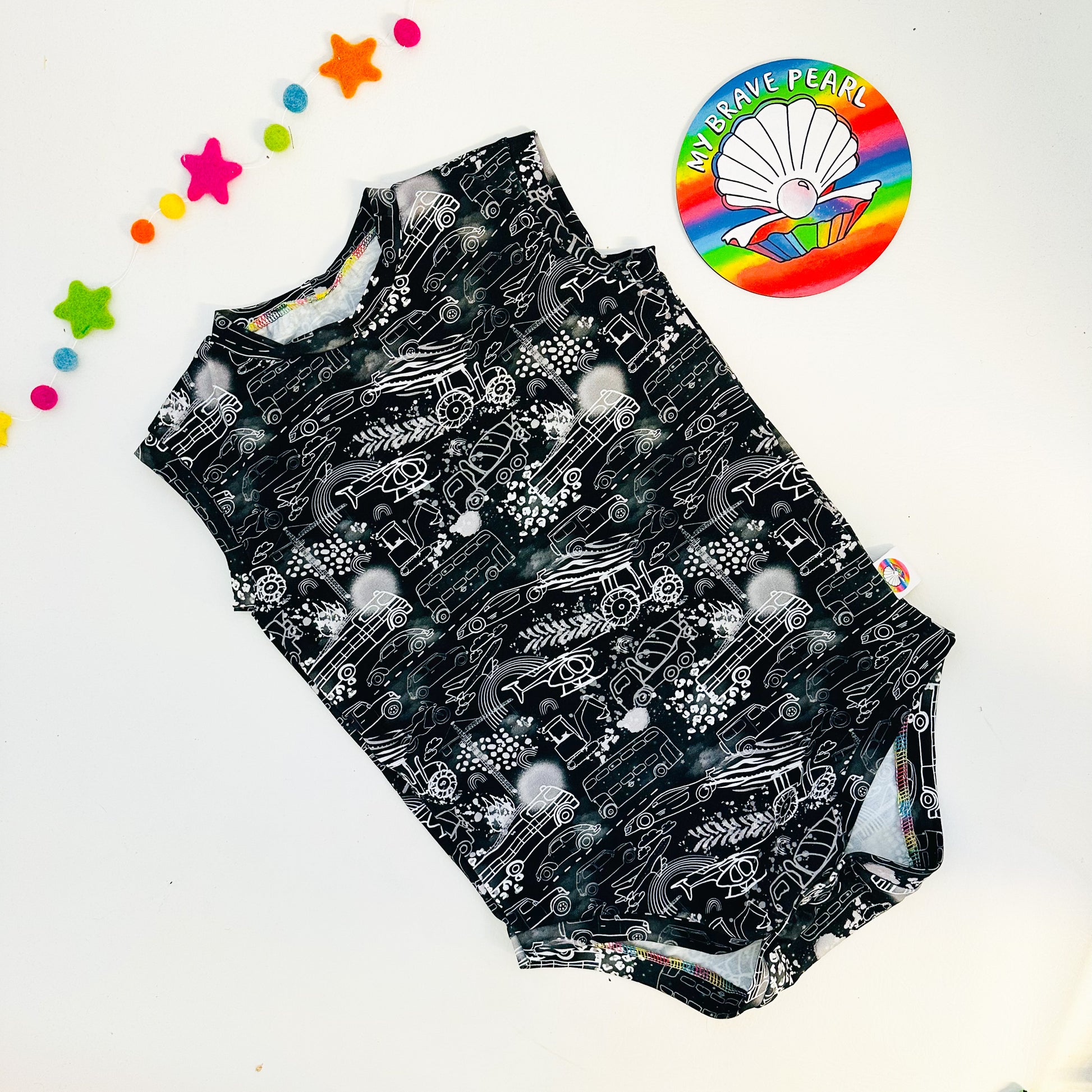 Our Kids Bodysuits are crafted from soft and stretchy Cotton Lycra and feature rainbow overlocked internal seams for comfort.
