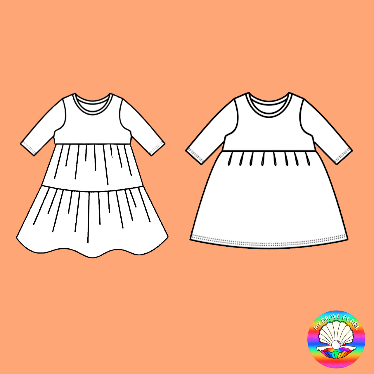 Our Kids Long Sleeve Dotty Dresses are crafted from soft and stretchy Cotton Lycra and feature rainbow overlocked internal seams for comfort. They have a relaxed fit bodice gathered at the waist with the choice of a simple or 2 tier skirt. *Please check the size chart as sizes may vary upon pattern *