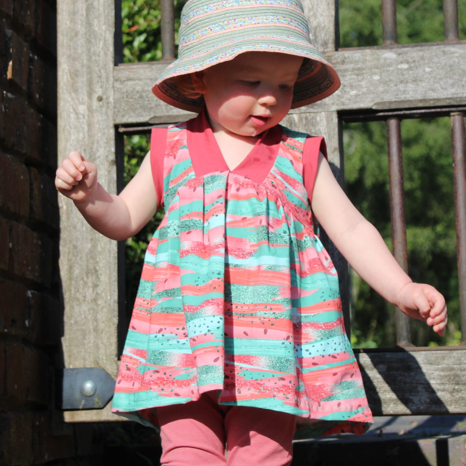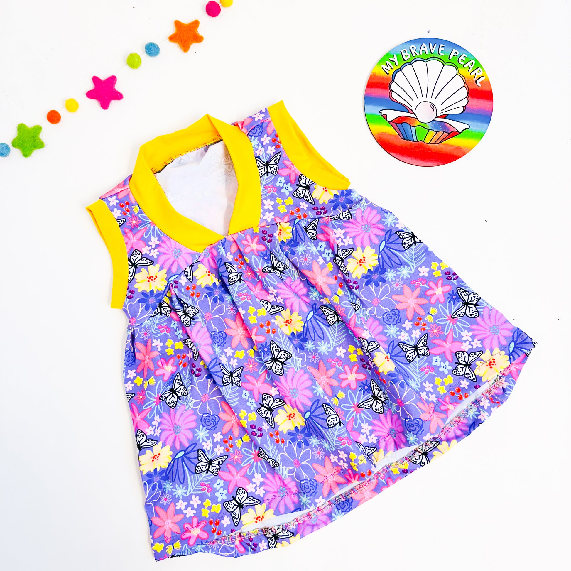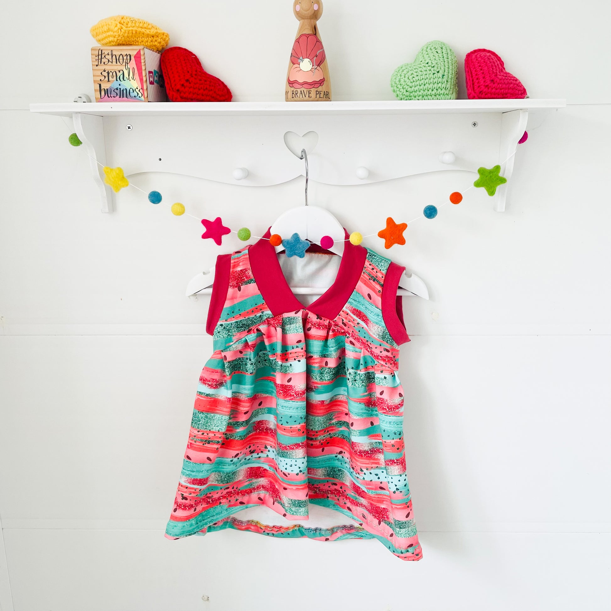 They feature a high curved empire waist and a drop hem. You can choose sleeveless or short sleeve.