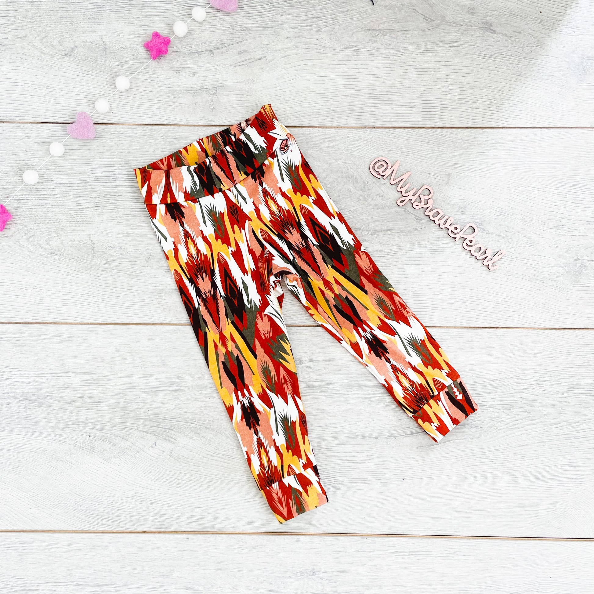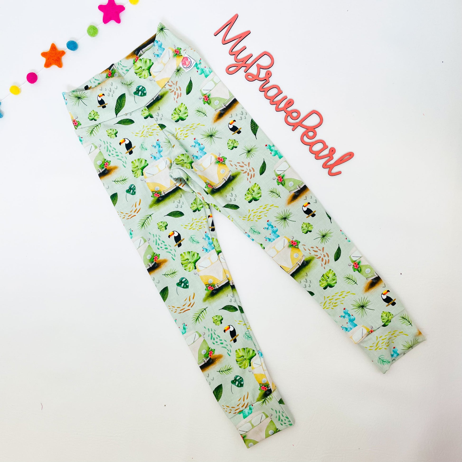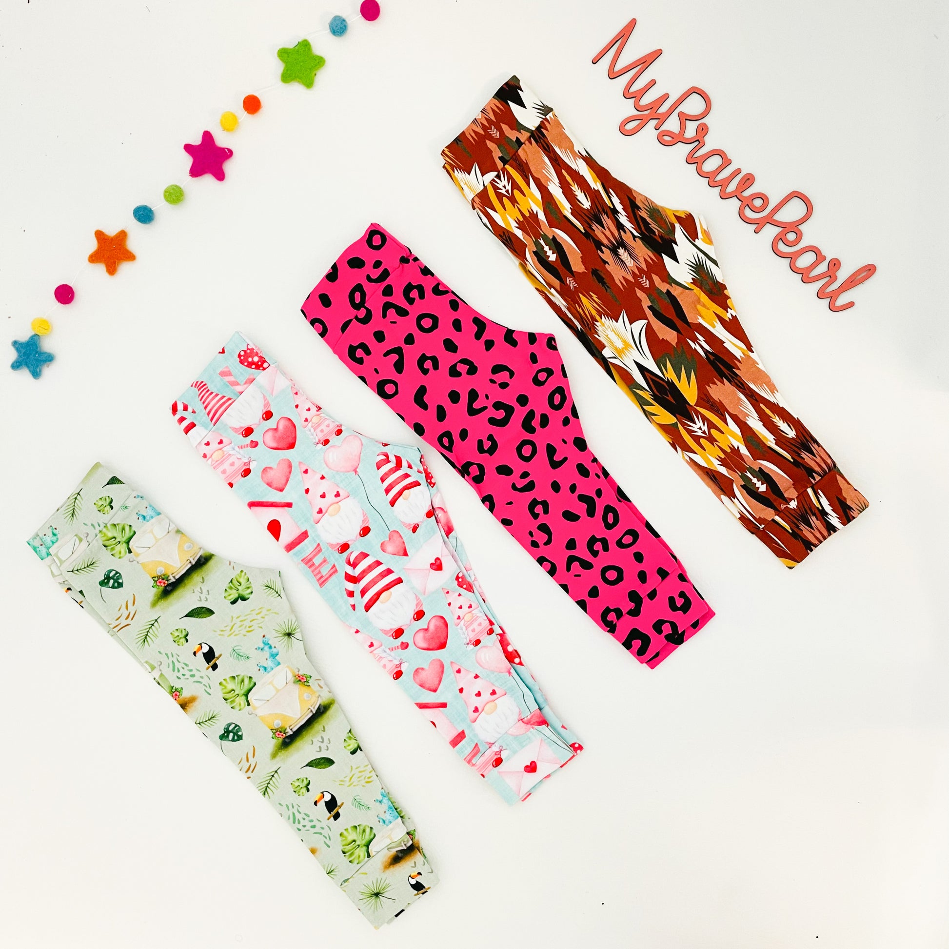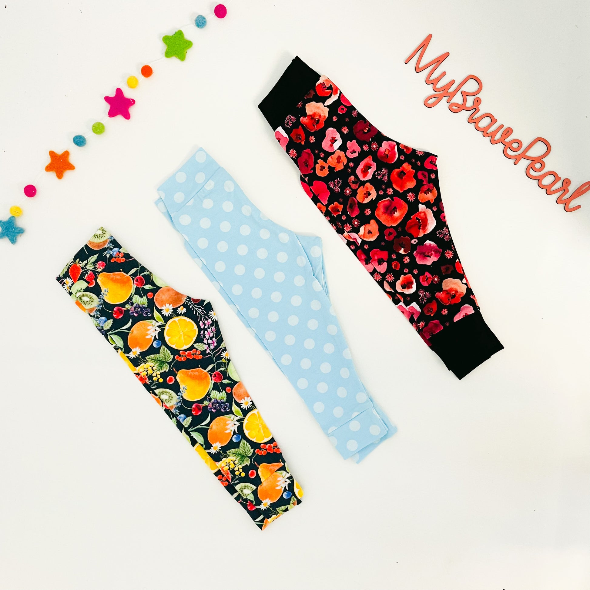 Our kids leggings are made from soft and stretchy cotton Lycra or snuggly French terry with a yoga waistband.
