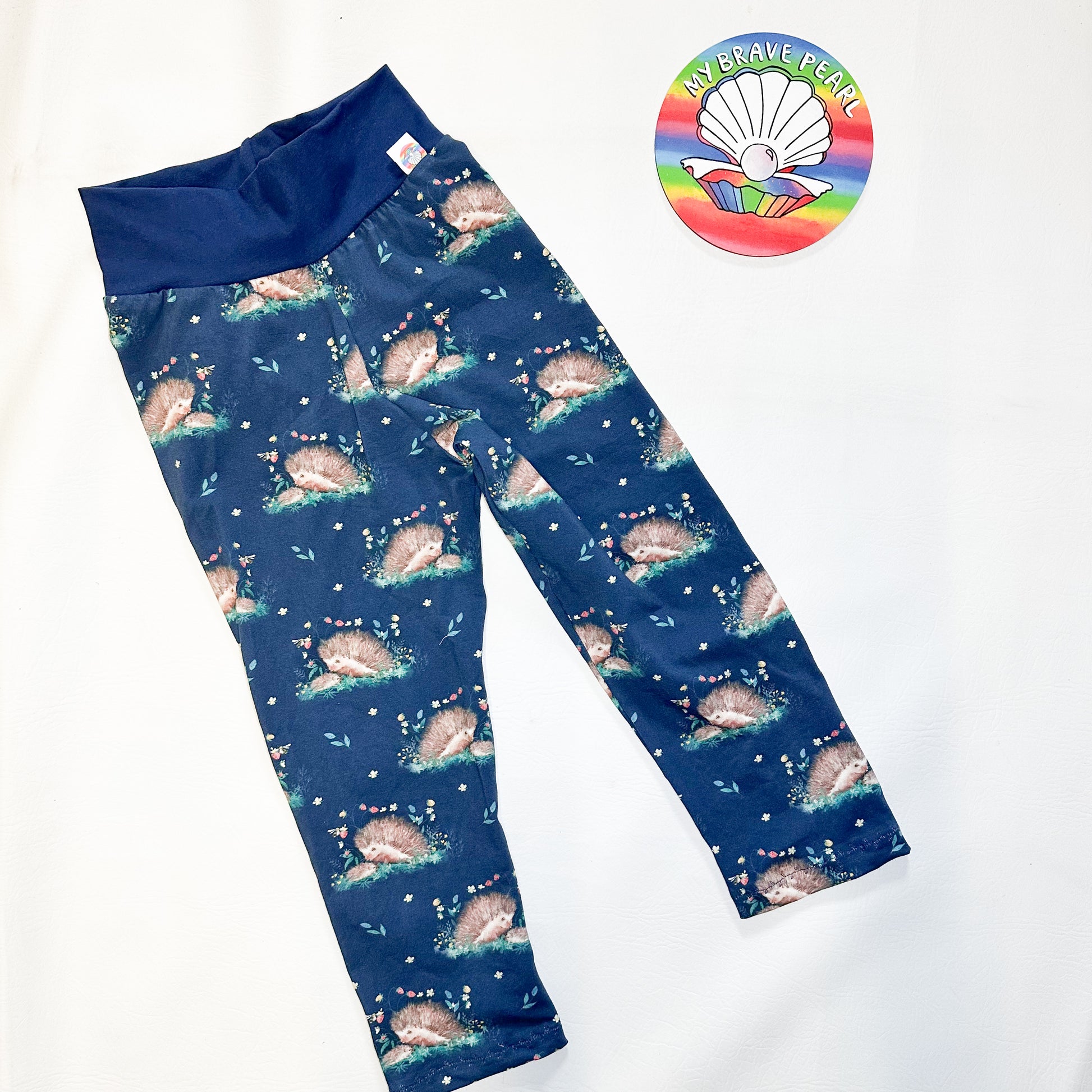 Ready To Ship 10-11Y Navy Hedgehogs Hemmed Capri Leggings