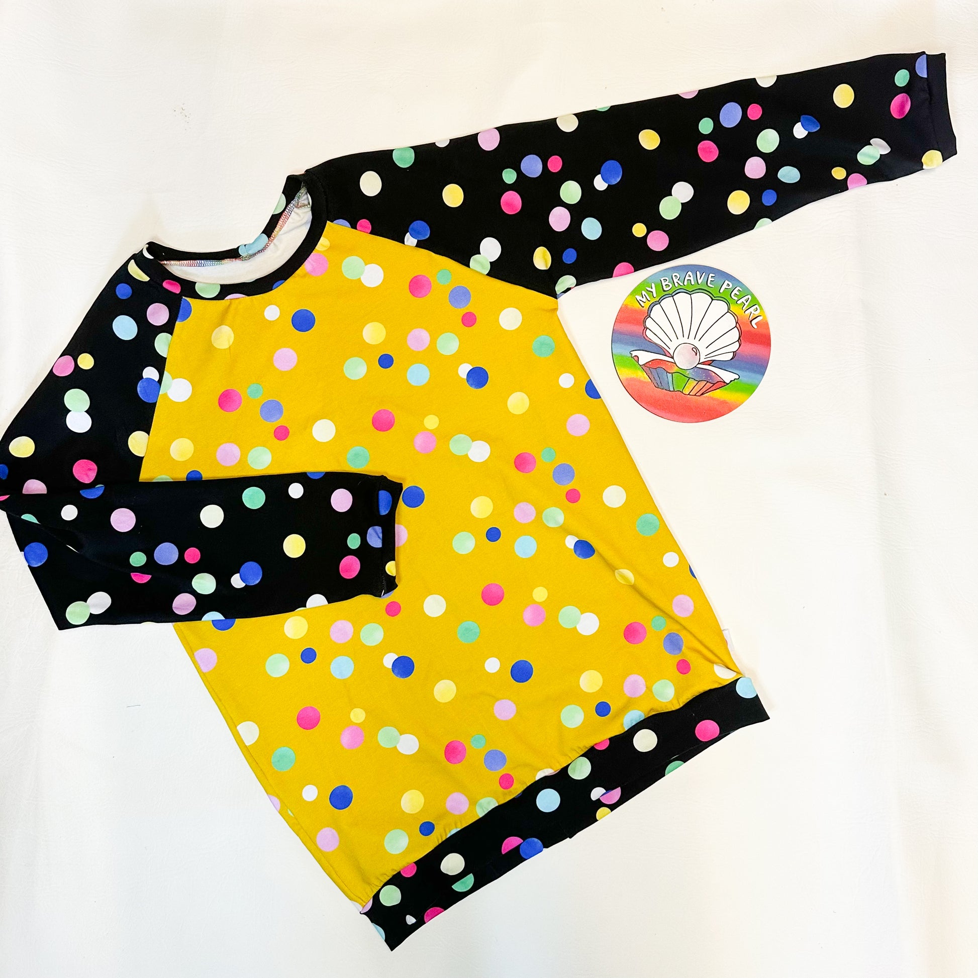 Ready To Ship 12-13Y Mustard and Black Spots Long Sleeve Raglan Tee
