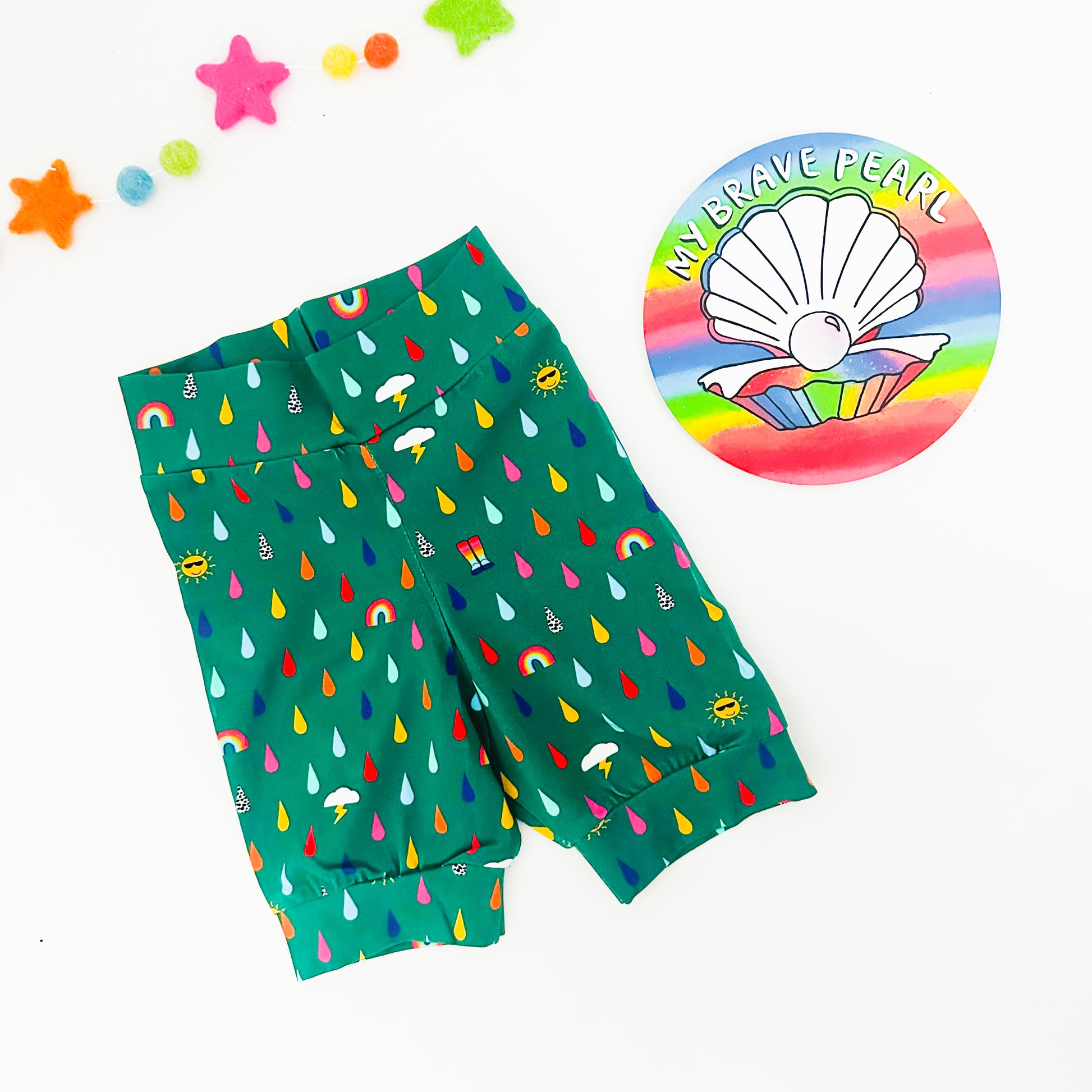 Ready To Ship 3-4Y Green Raindrops Cycling Shorts