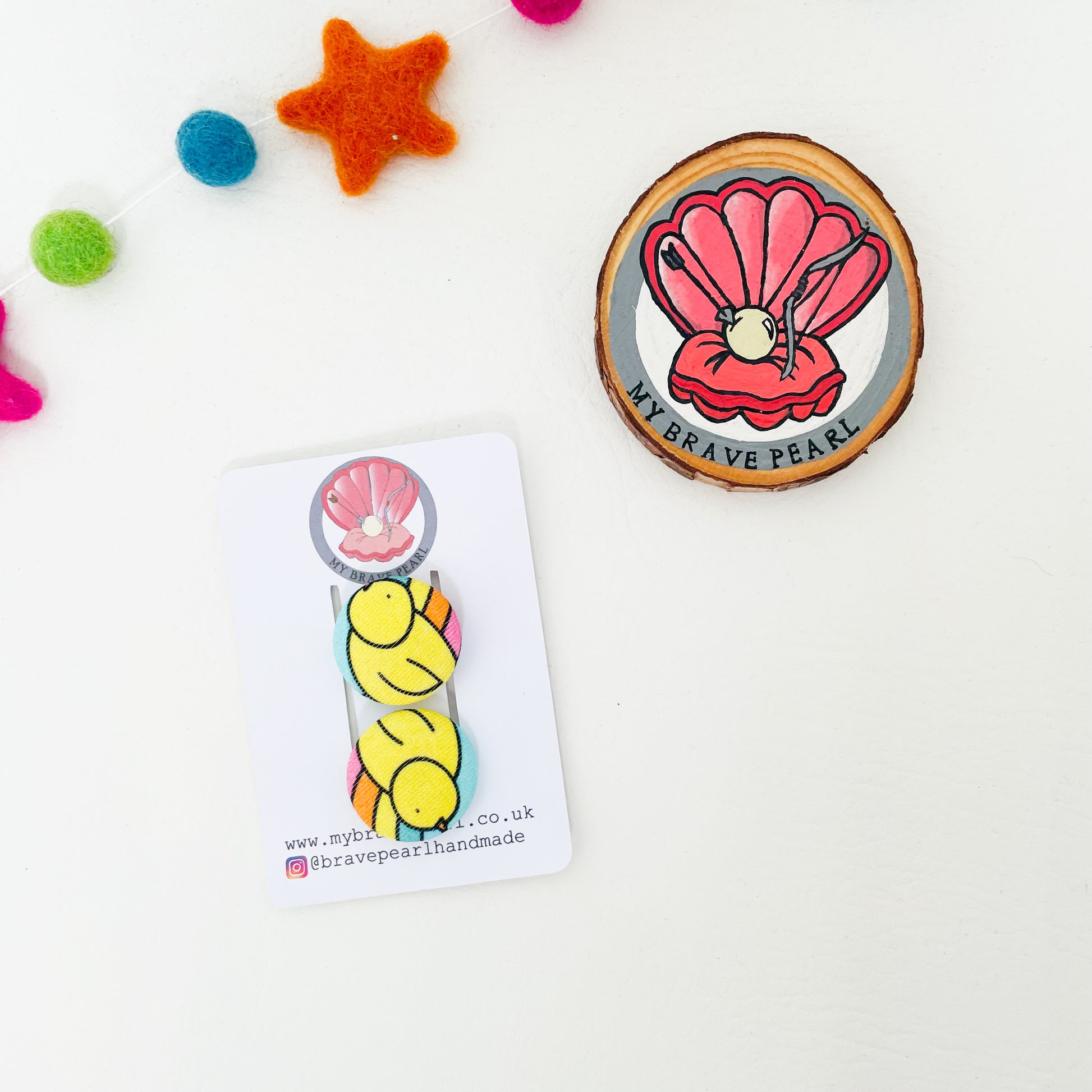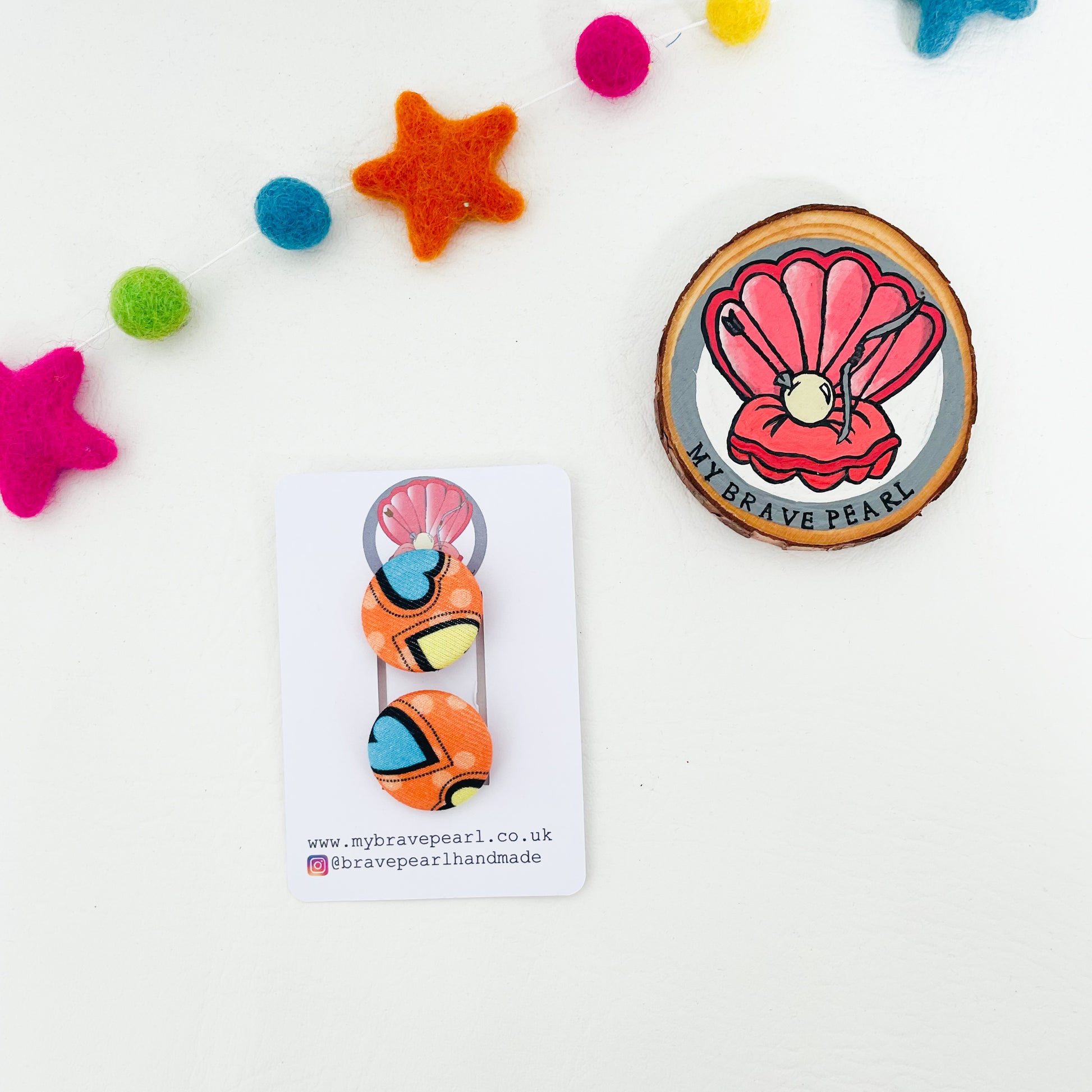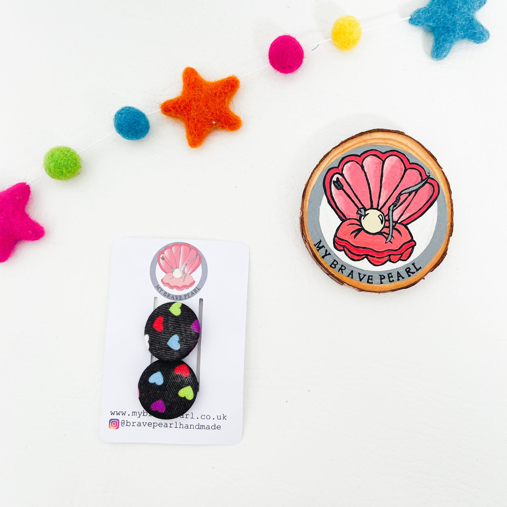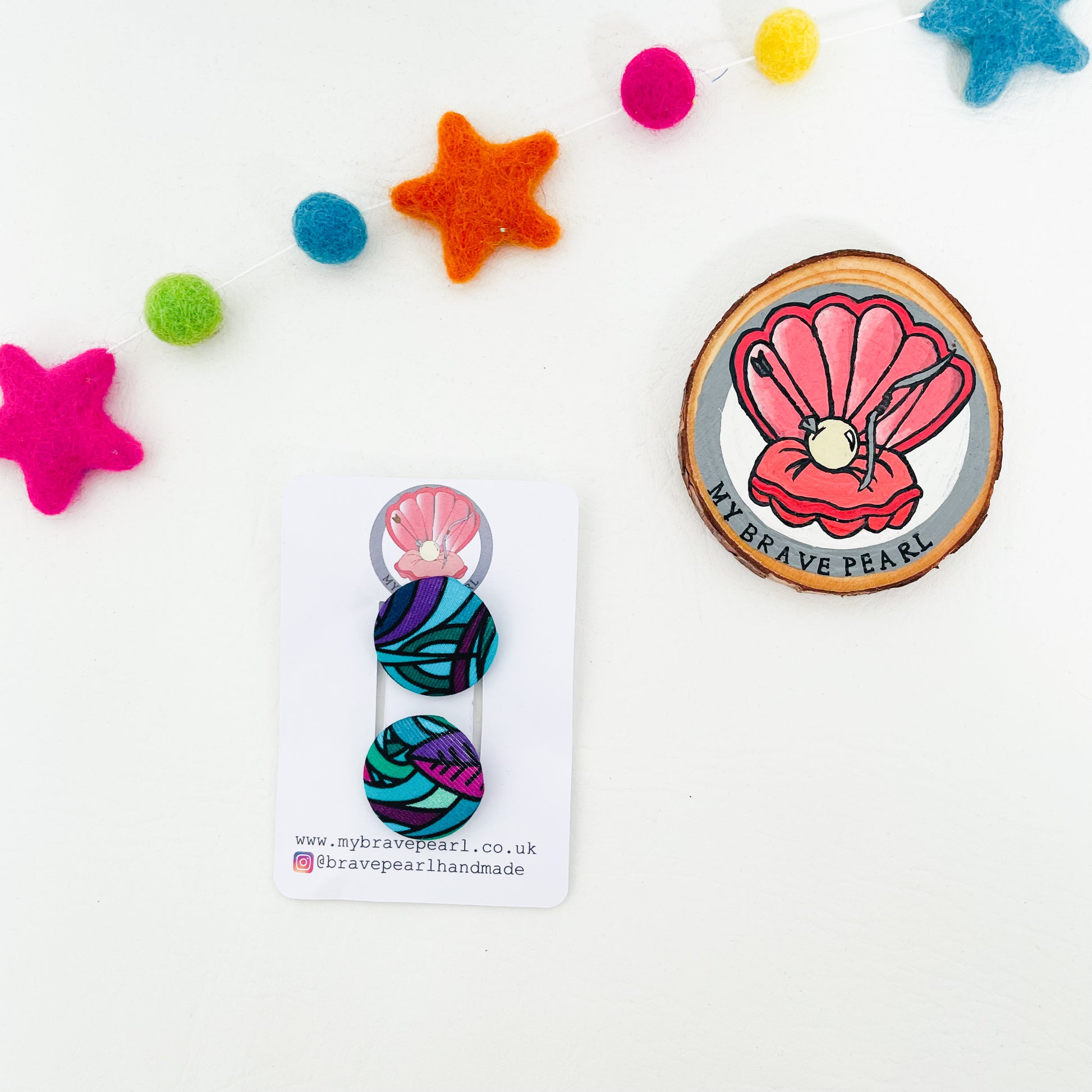 Our 3cm bobbles are made from soft and stretchy cotton Lycra or French terry offcuts with metal backers and a coloured hair tie.