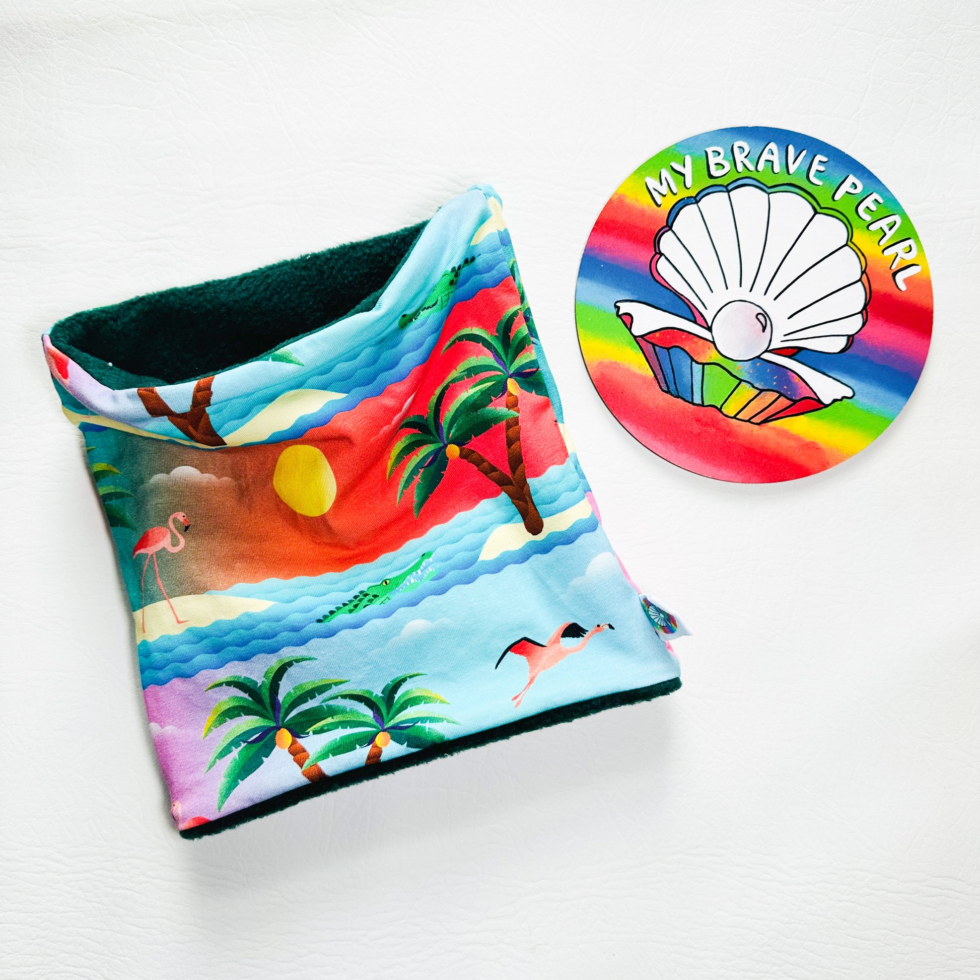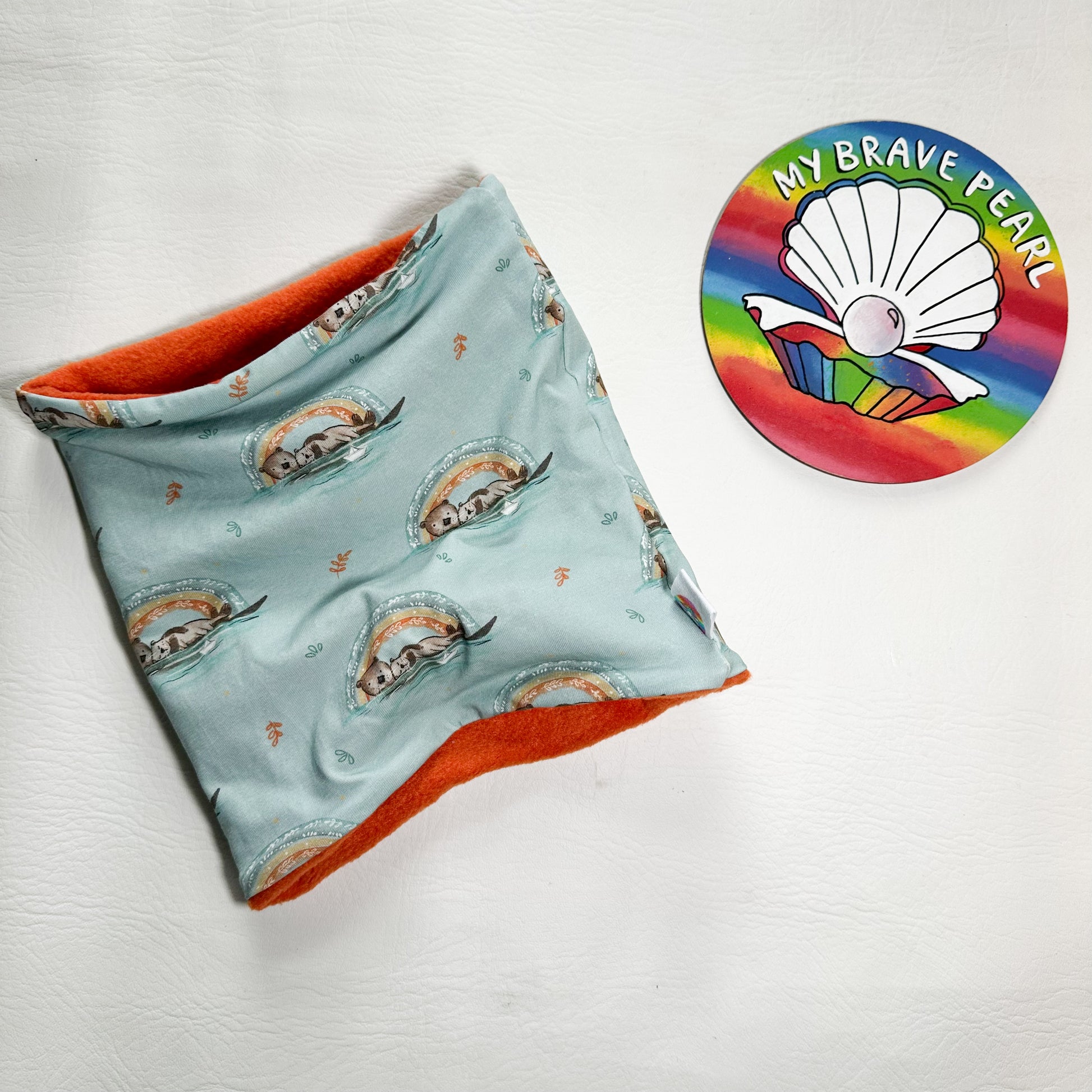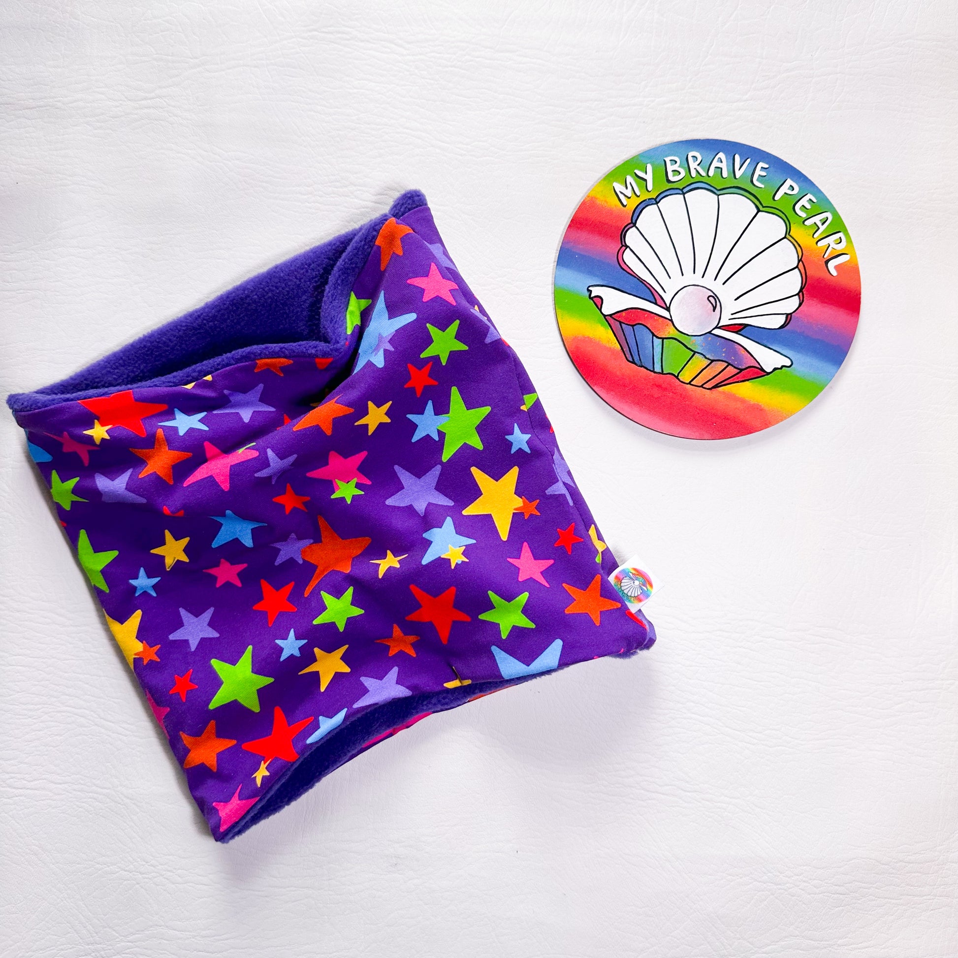 Our snuggly snoods are made from soft and stretchy cotton Lycra or French Terry, with a warm fleece liner.