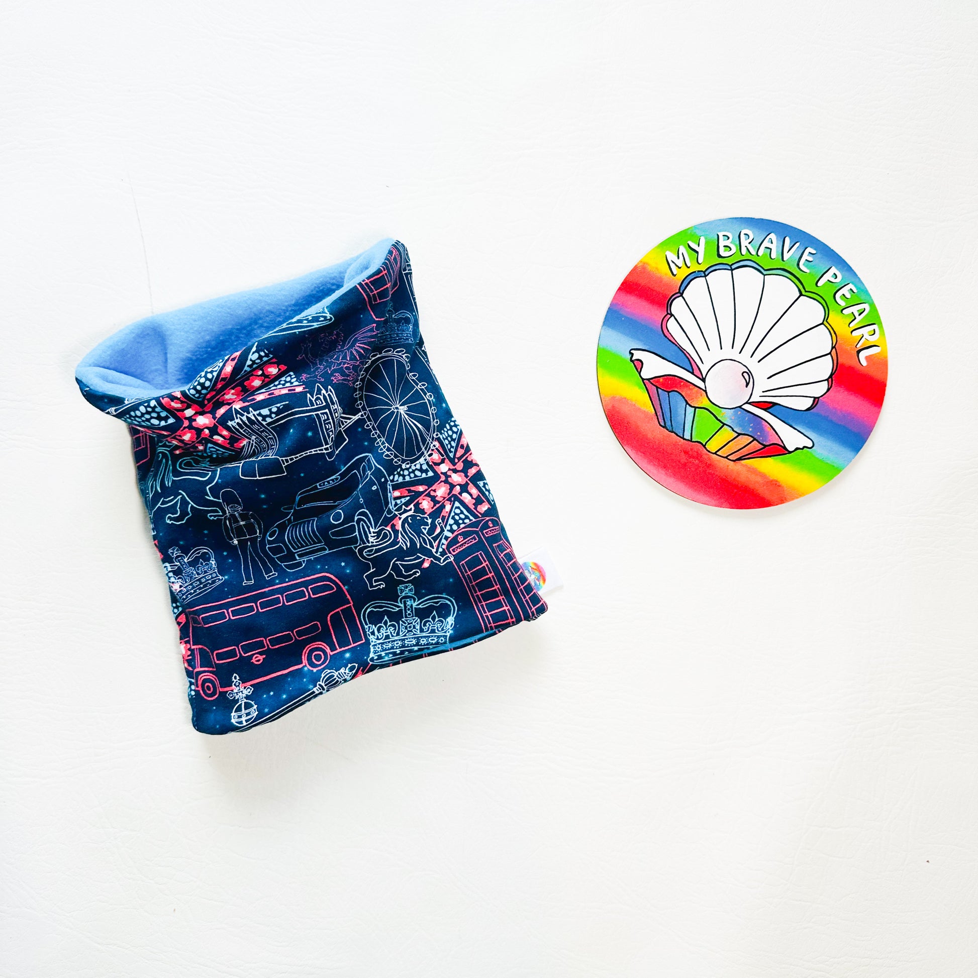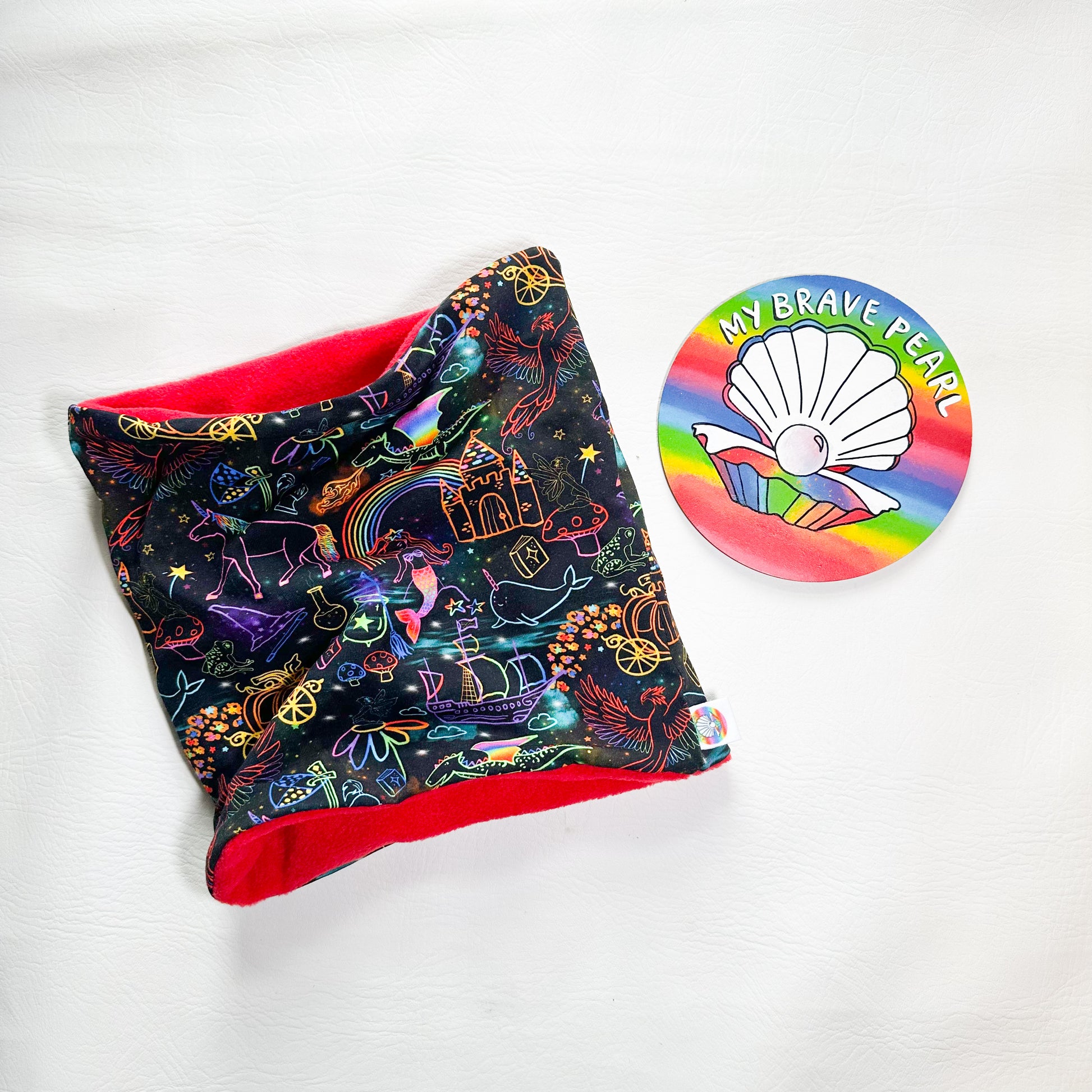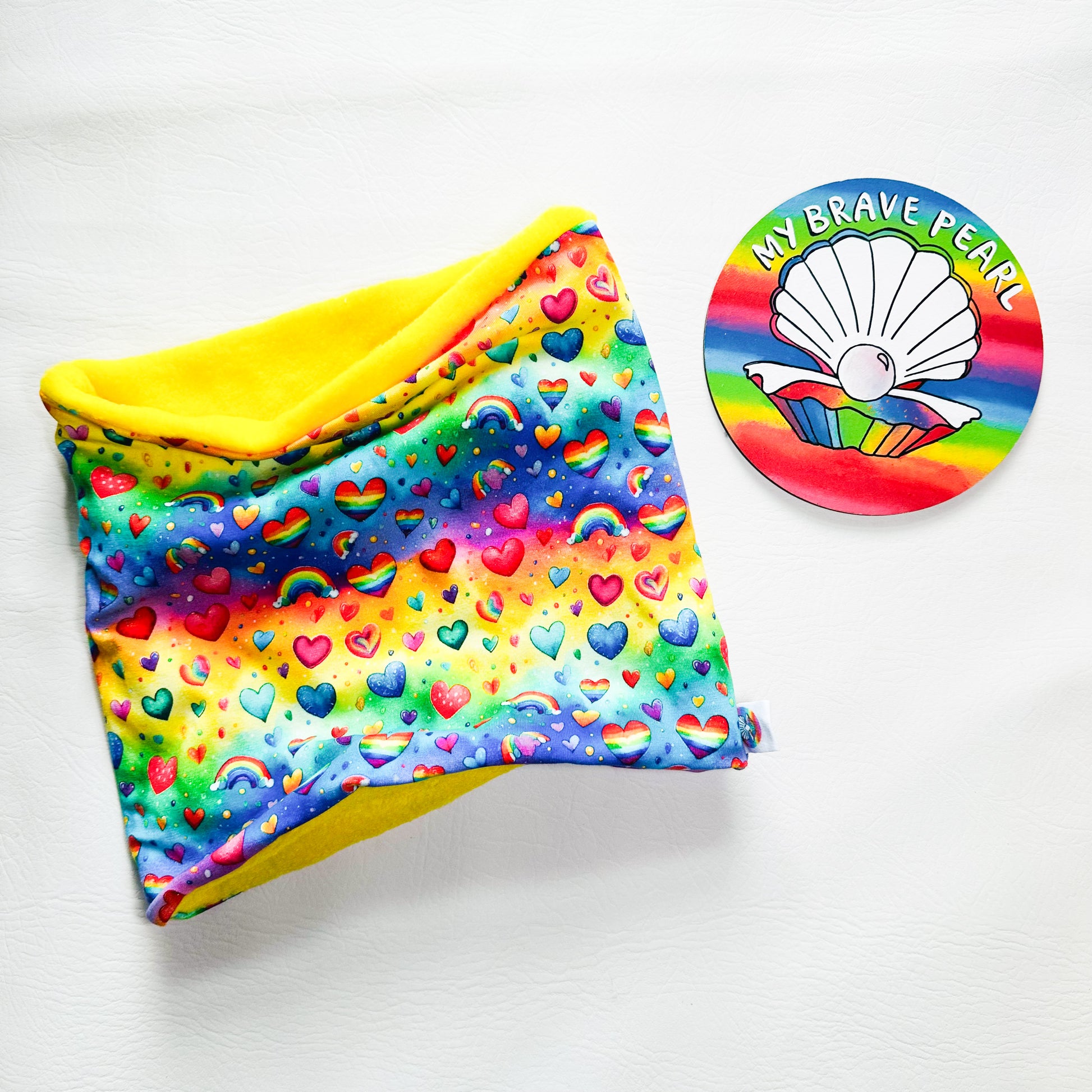 Our snuggly snoods are made from soft and stretchy cotton Lycra or French Terry, with a warm fleece liner.