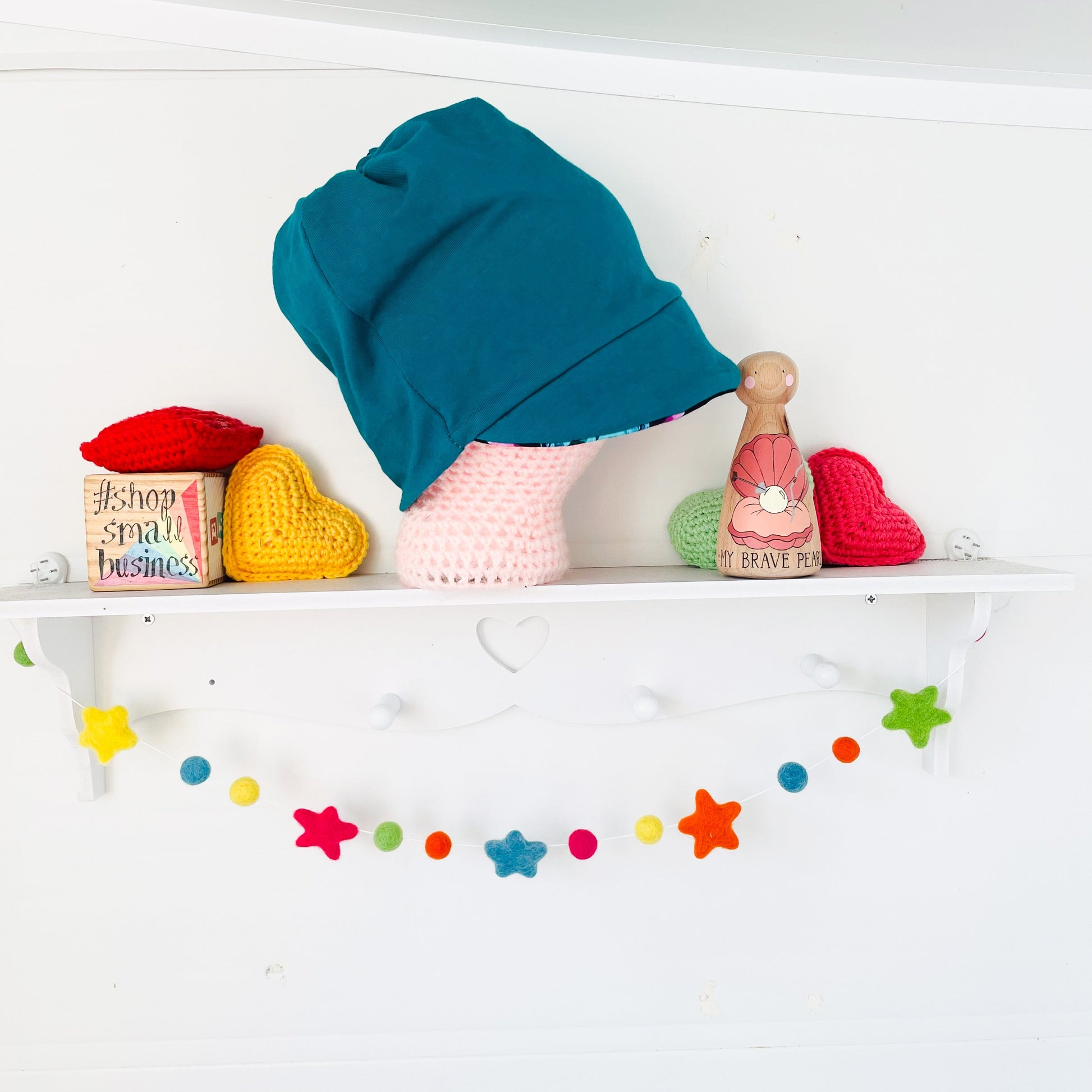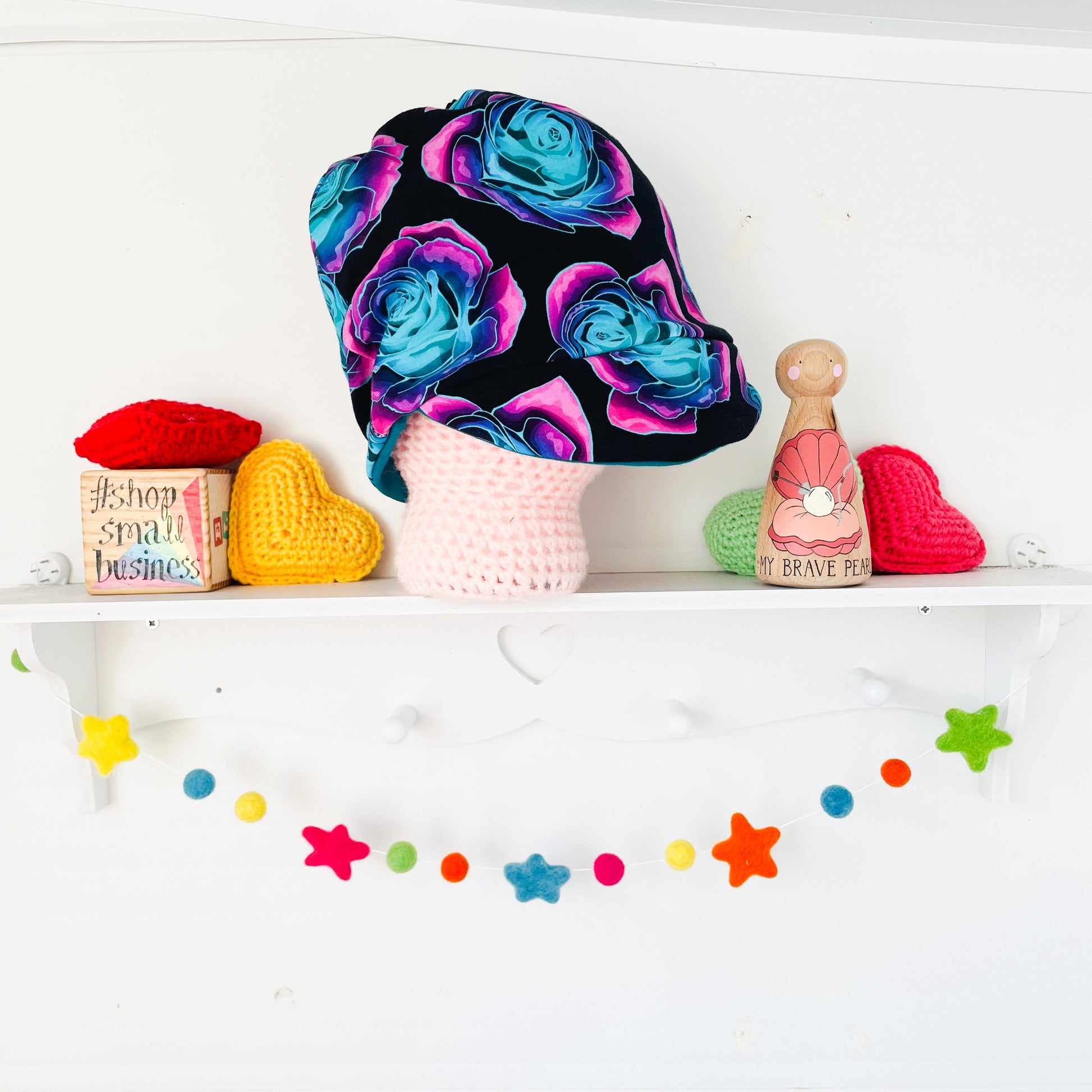 Our Beanie Hats are made from soft and stretchy cotton Lycra. They are fully reversible.