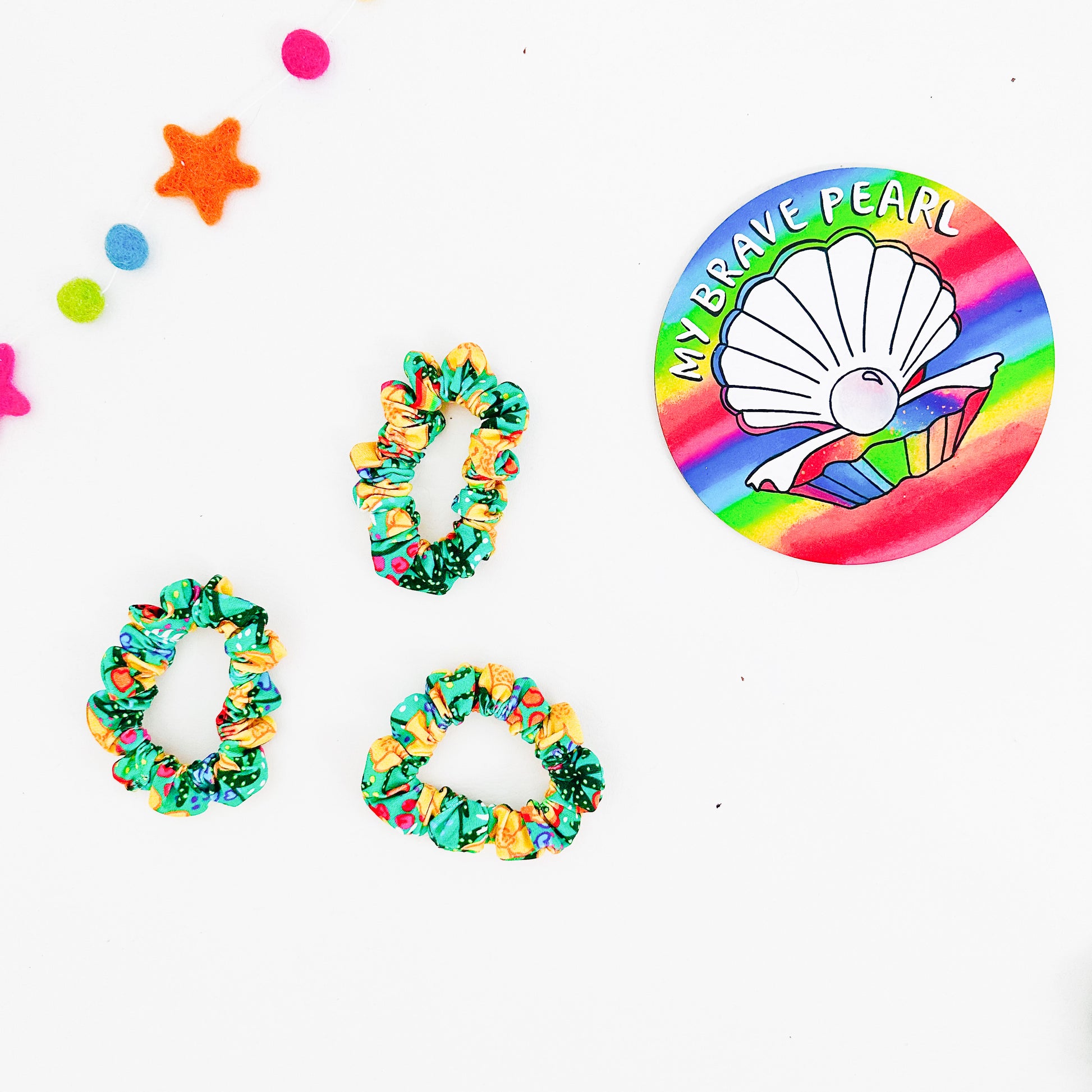 Our skinny scrunchies are crafted from soft and stretchy cotton Lycra or French terry offcuts! You can have one scrunchie for £2 or three for £5.